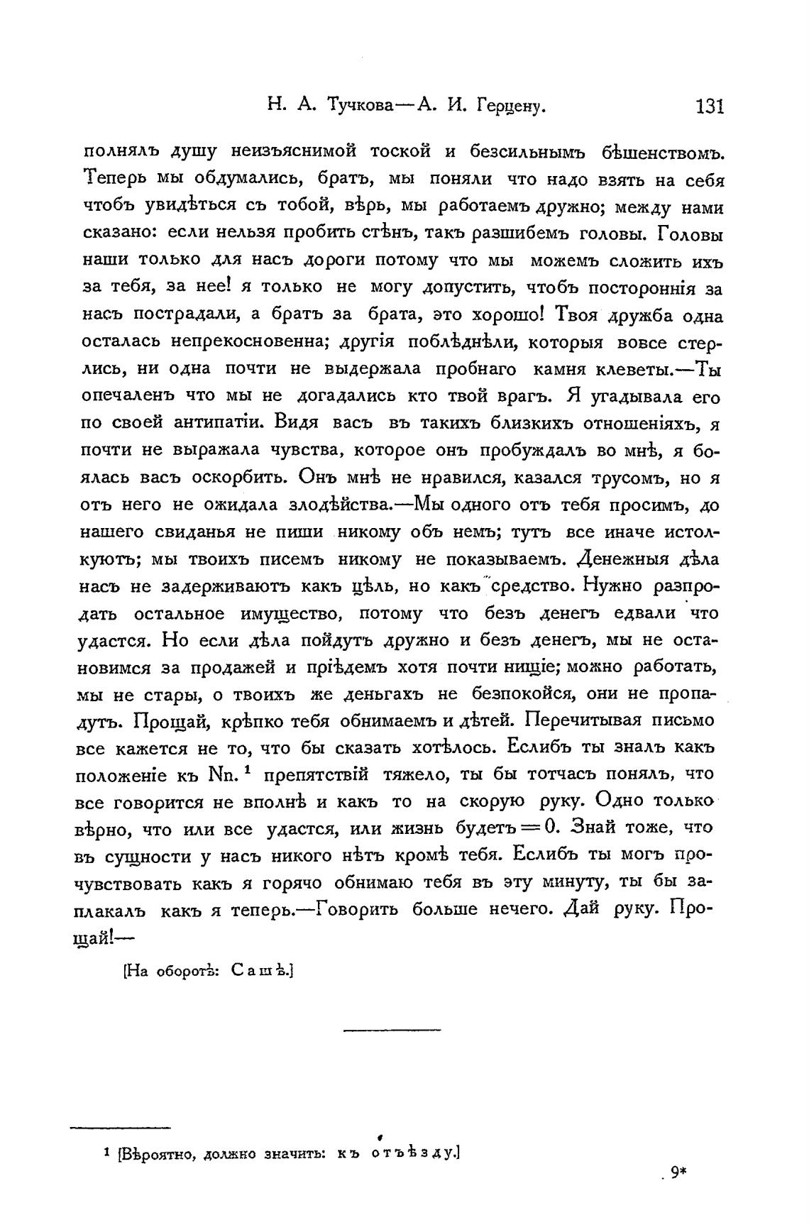 Н. А. Тучкова— А. И. Герцену.