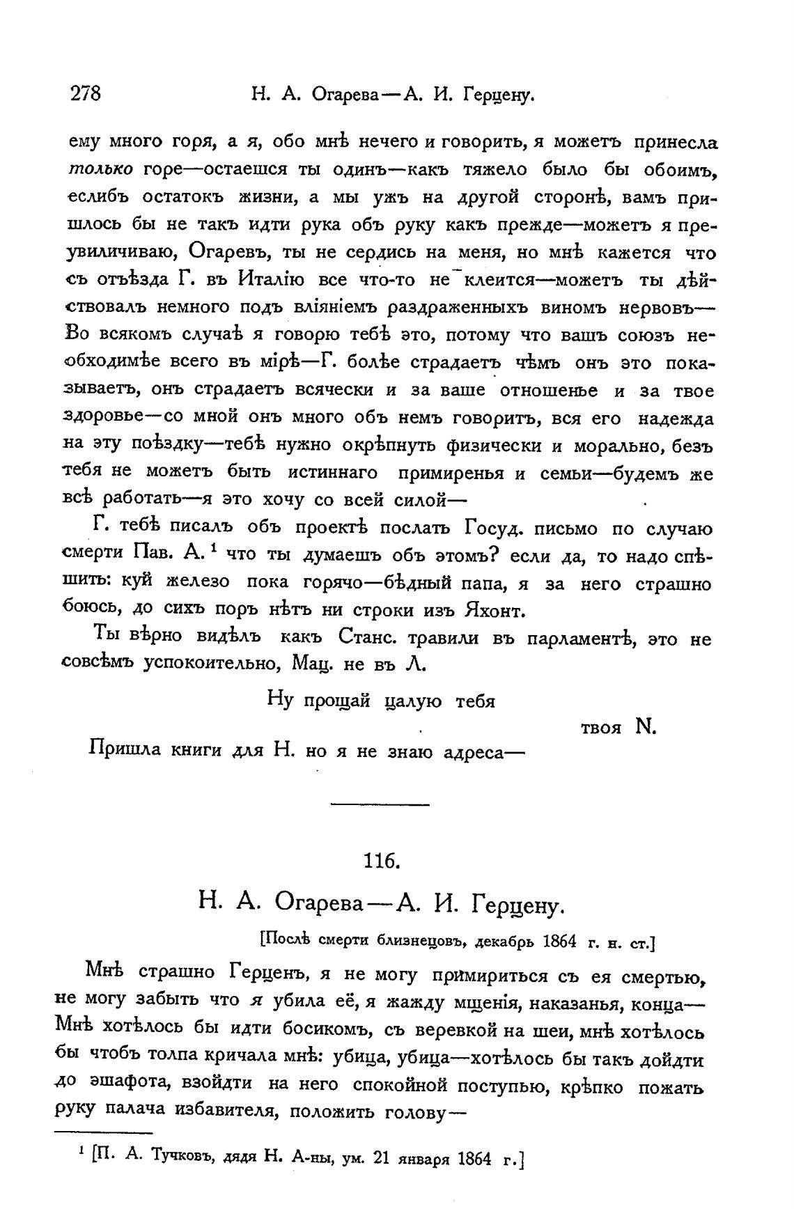 Н. А. Огарева—А. И. Герцену.