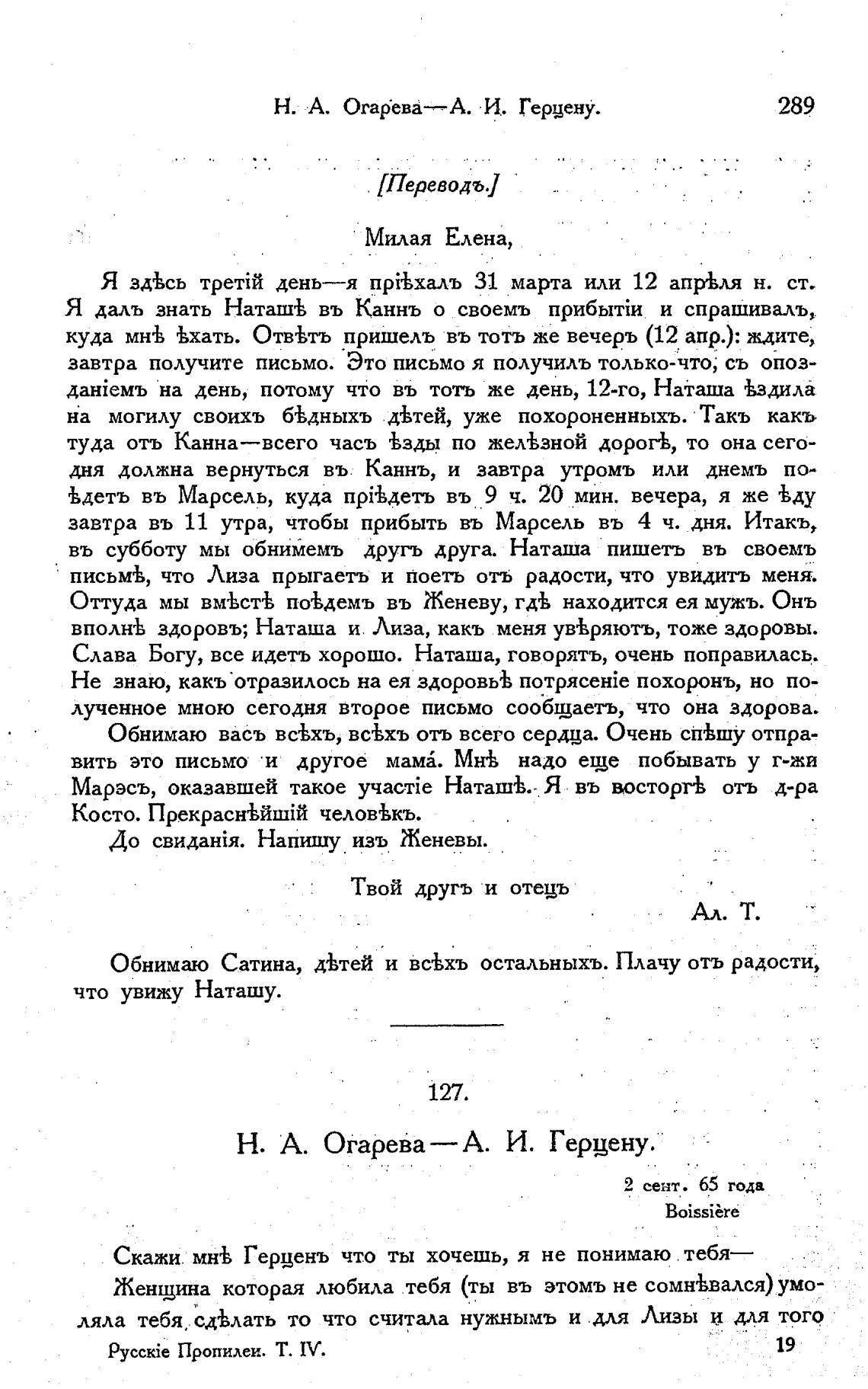 Н. А. Огарева—А. И. Герцену.