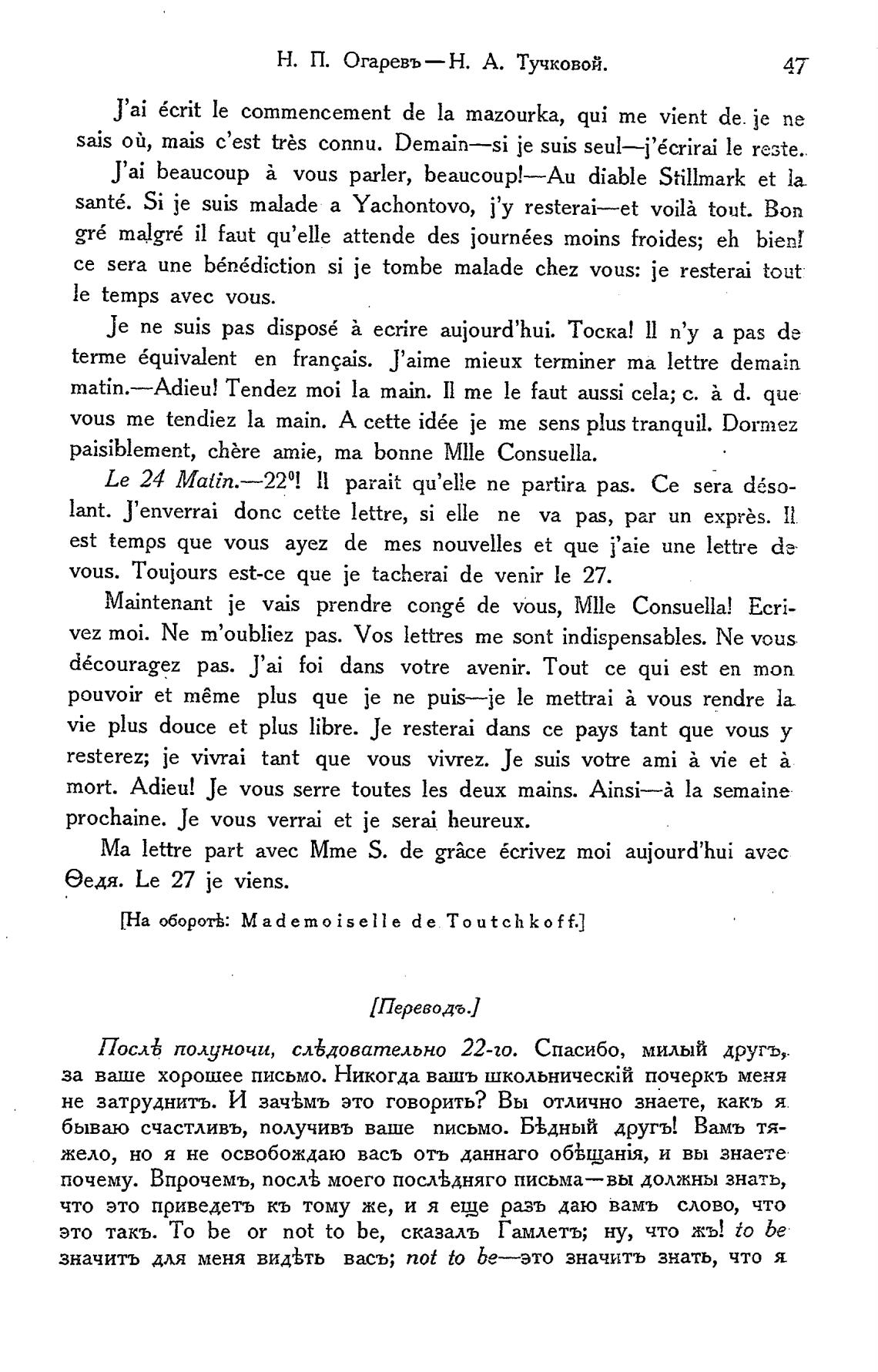 Н. П. Огаревъ — Н. А. Тучковой.