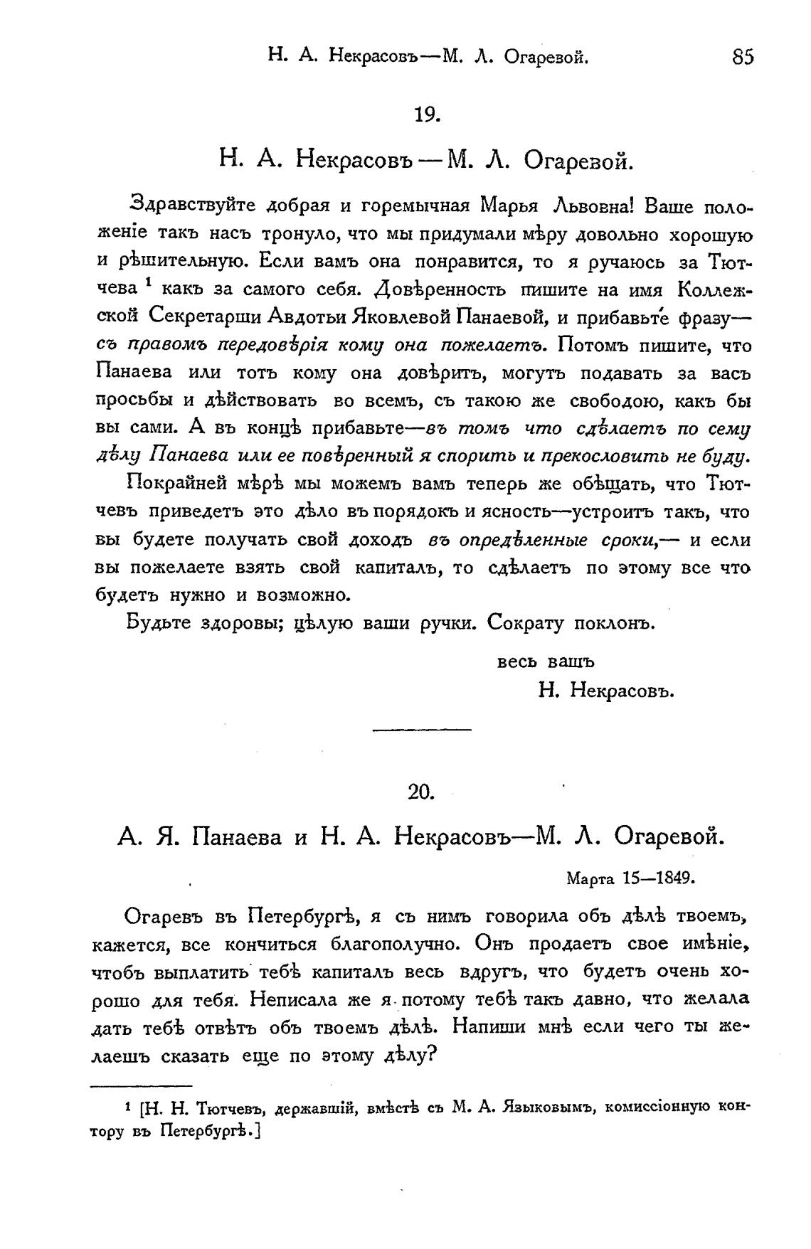 А. Я. Панаева и Н. А. Некрасовъ—М. Л. Огаревой.