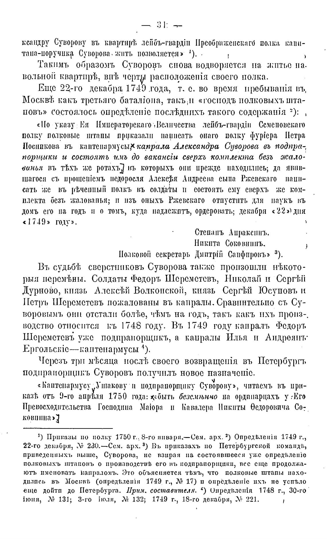 1) Приказы по полку 1750 г.. 8-го января.—Сем. арх. 2) Опред•влетйя 1749 г.,