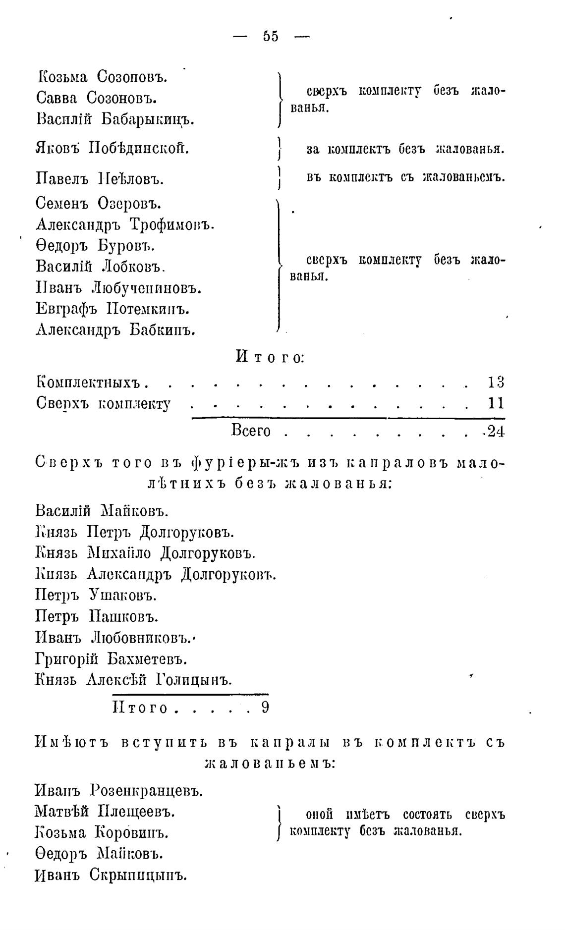 комплекту безъ жалованья.