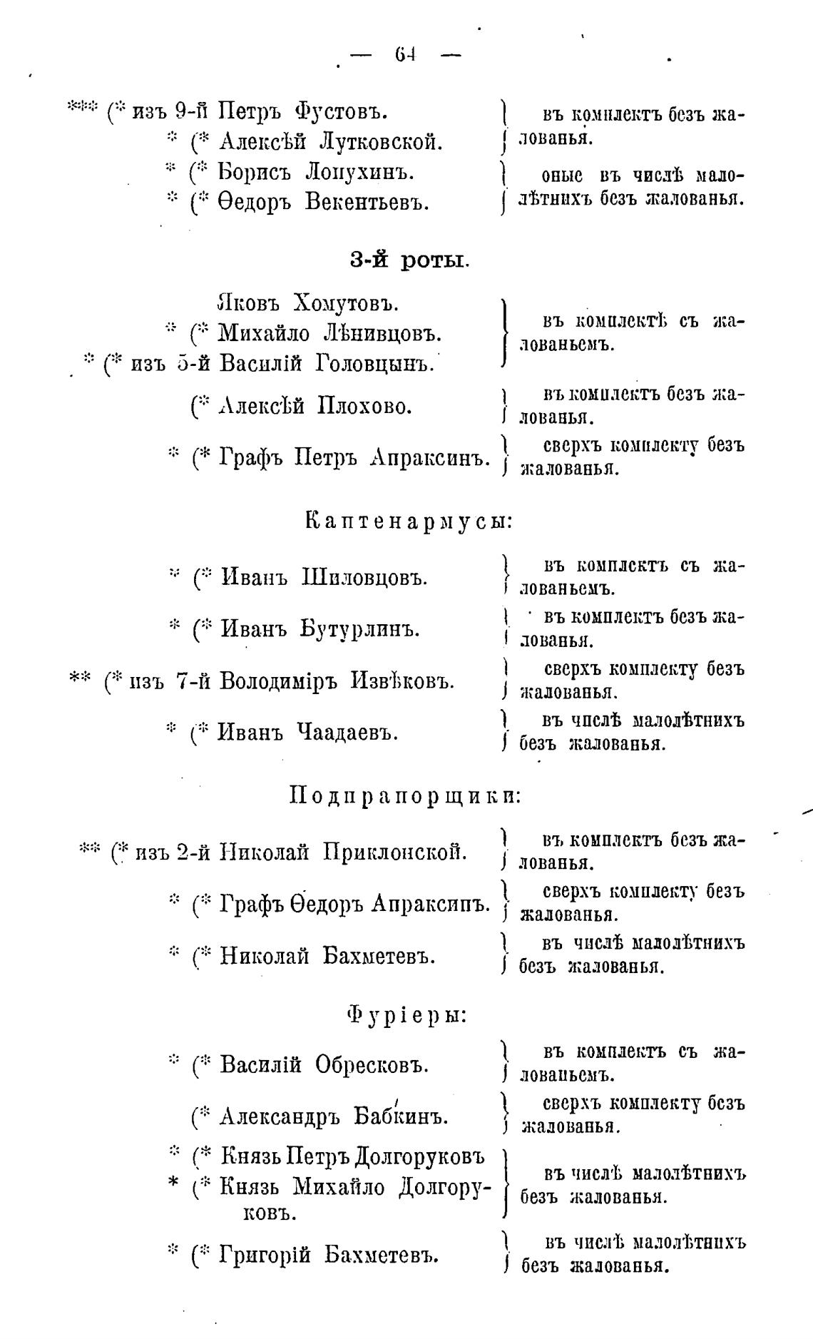 сверхъ комплекту безъ