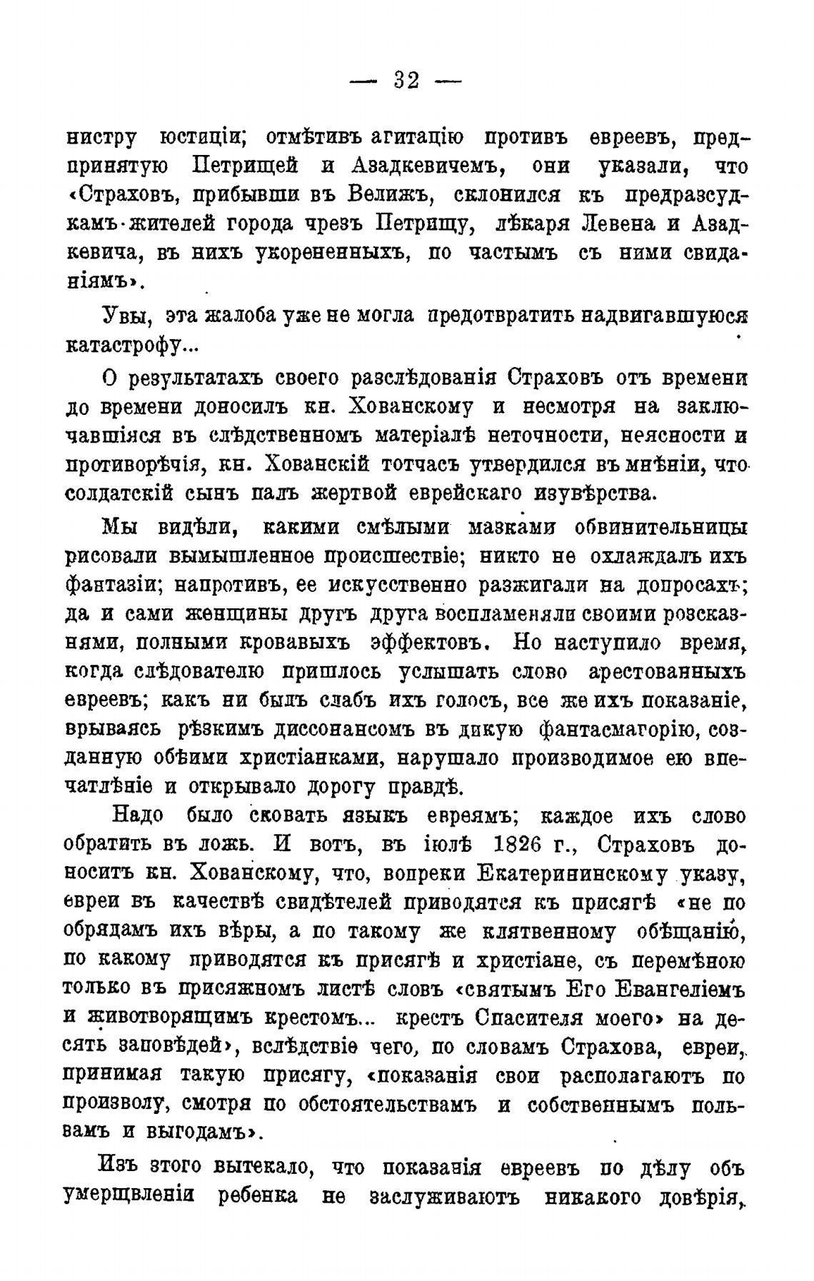 «Страховъ, прибывши въ Велижъ, СЕДОНИЛСЯ кь предразеуд-