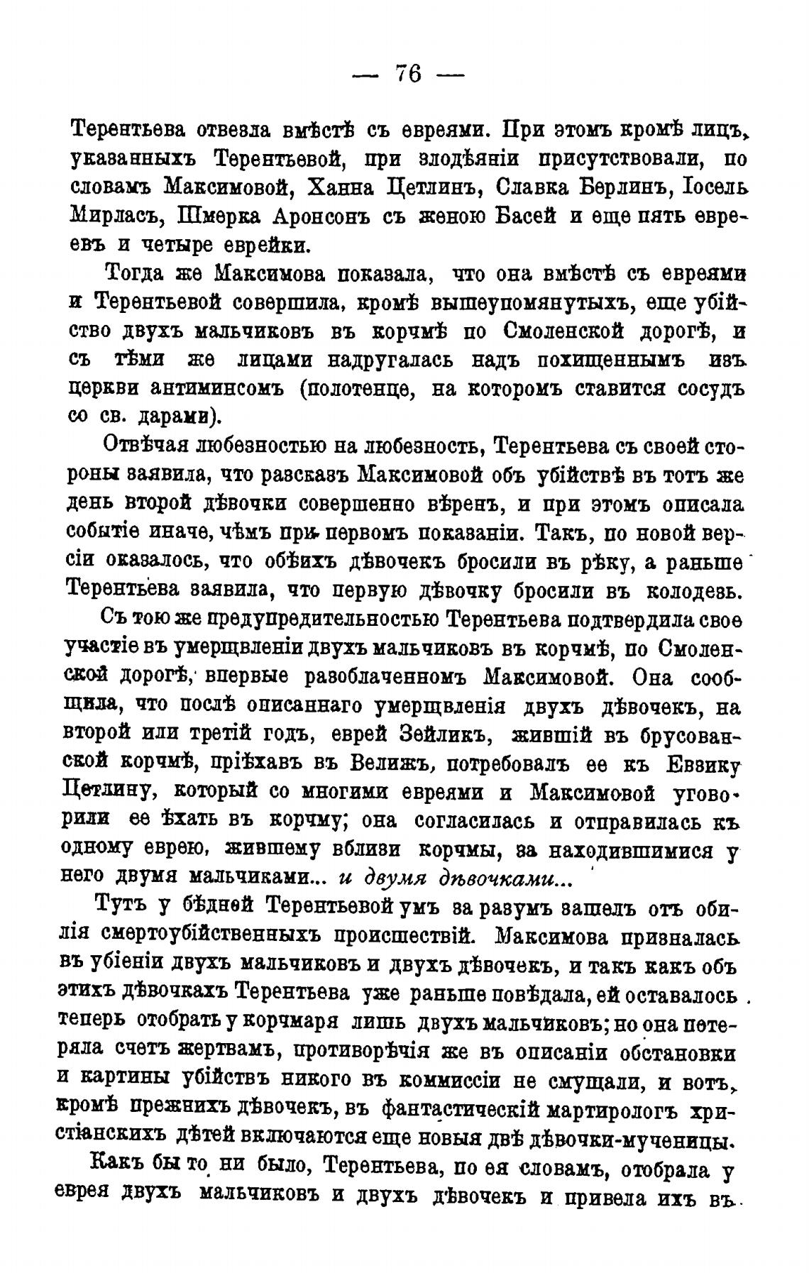 Терентьева отвевла вм%стђ съ евреями. При этомъ ЕРОМ'Ь дидъ»