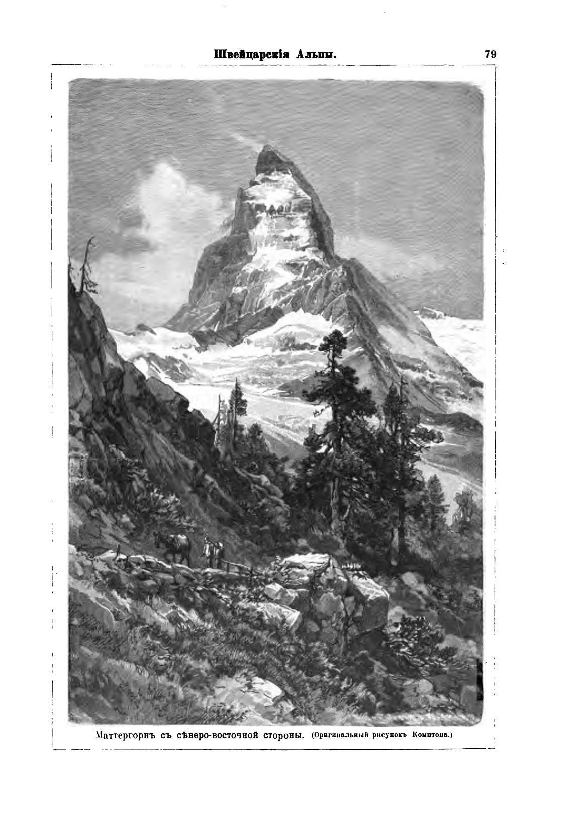 Маттергорнъ съ стервосточной стороны. (Оригинальный рнсувокъ Комптона.)