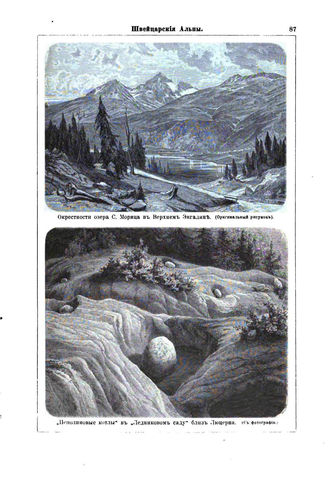 Окрестности озера С. Морица въ Верхнемъ Энгадиа%. (Оригинальный рисунок».