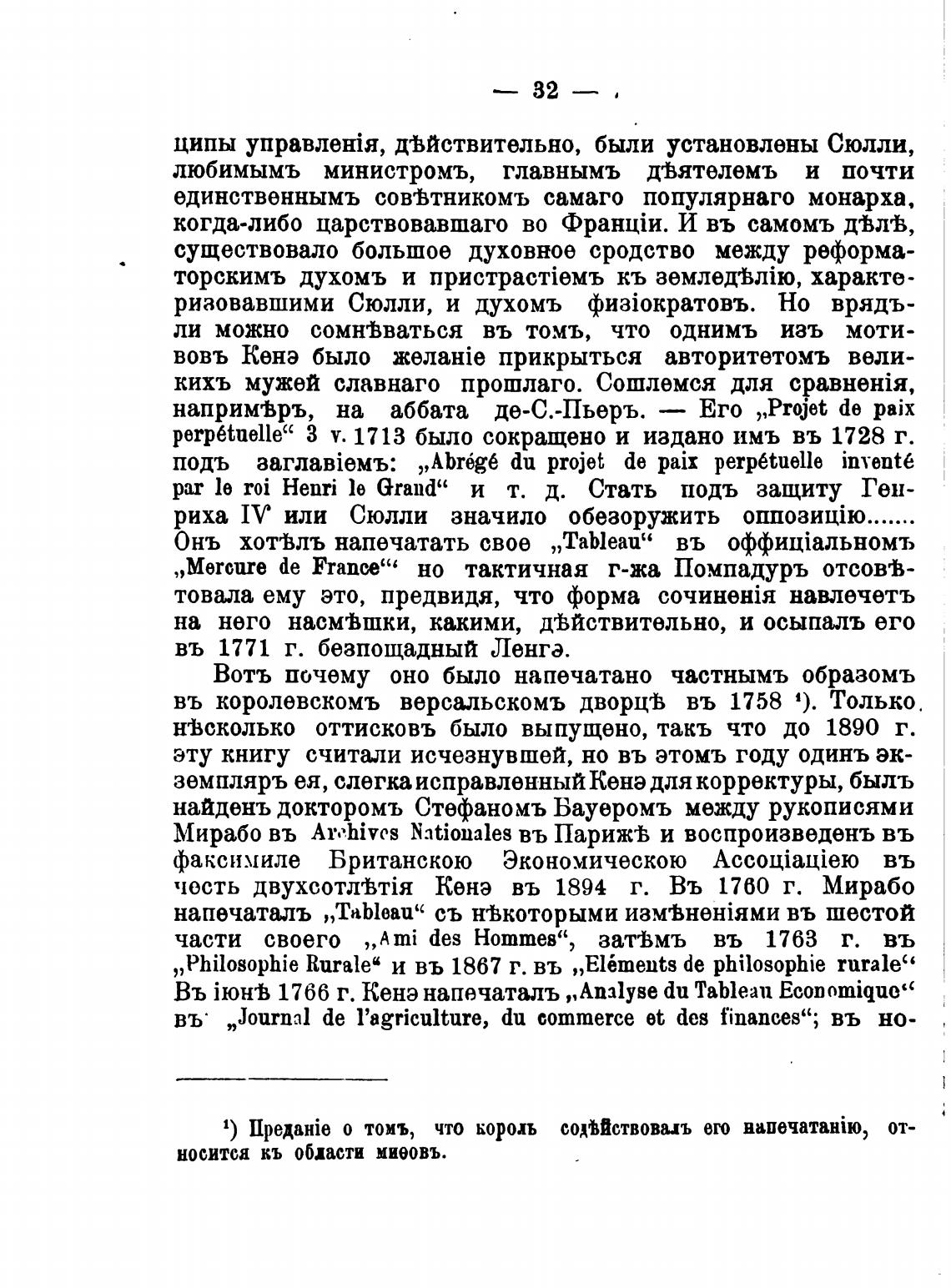 Въ ЈюнВ 1766 г. Кенэ напечаталъ „Analyse du Tableau Economiquo”