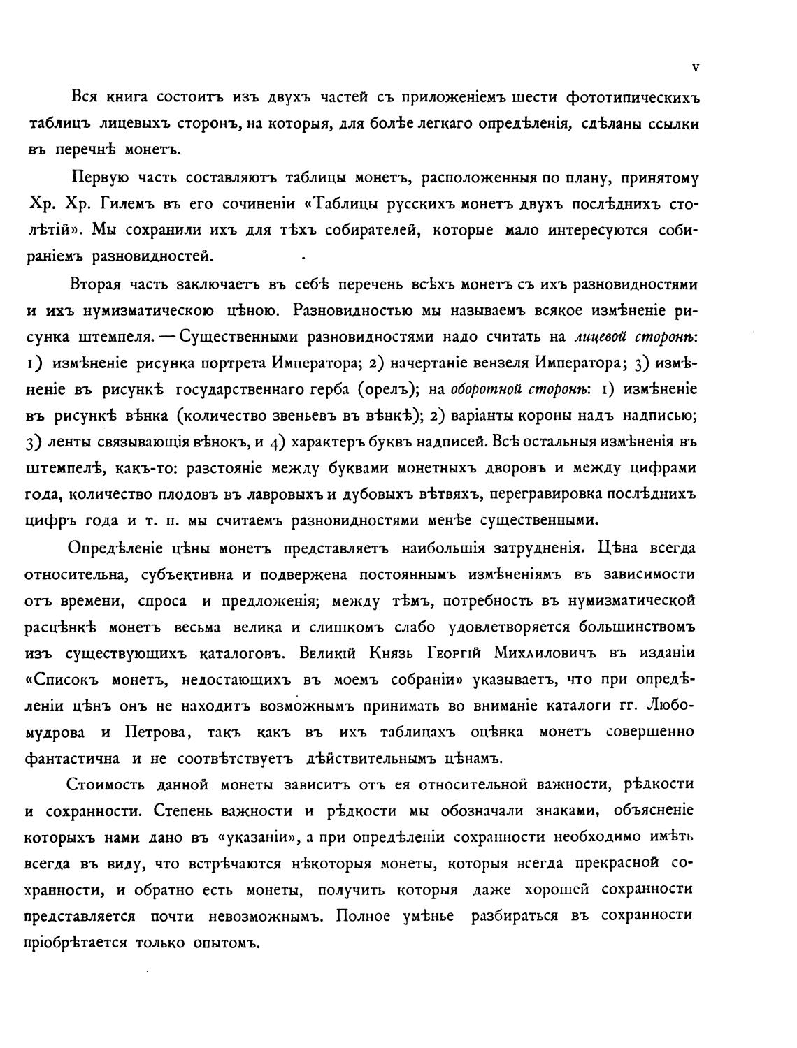 Вторая часть заключаеть въ себЊ перечень всЊхъ монетъ съ ихъ разновидностями