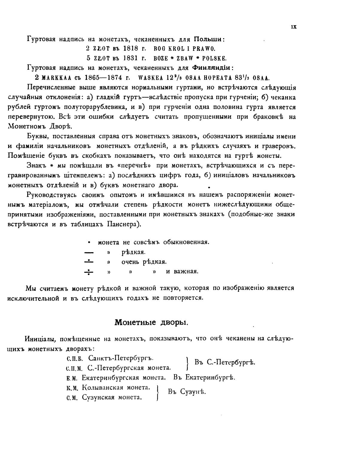 монетныхъ и в) буквъ монетнаго двора.