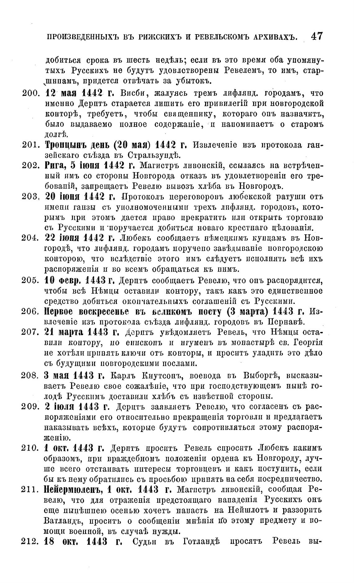 200. 12 мая 1442 Г. Висби, жалуясь тремъ лифлянд. городамъ, что