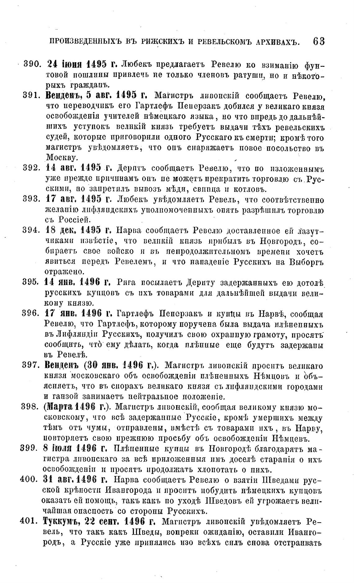 400. 31 авг. 1496 Г. Нарва сообщаетљ Ревелю о ПЕведами рус-