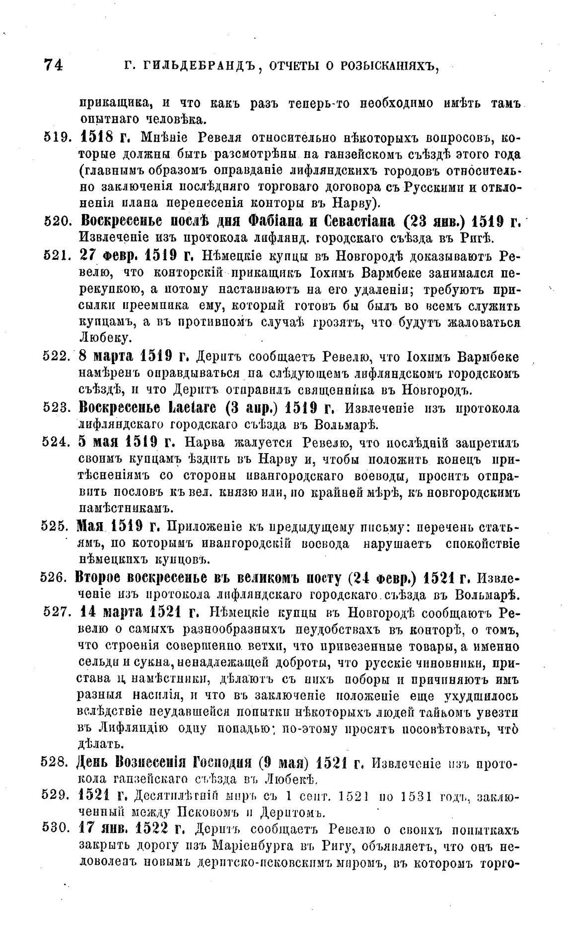 522. 8 марта 1519 Г. Дерцтъ сообщаетъ Ревело, что 1охпмъ Вармбеке