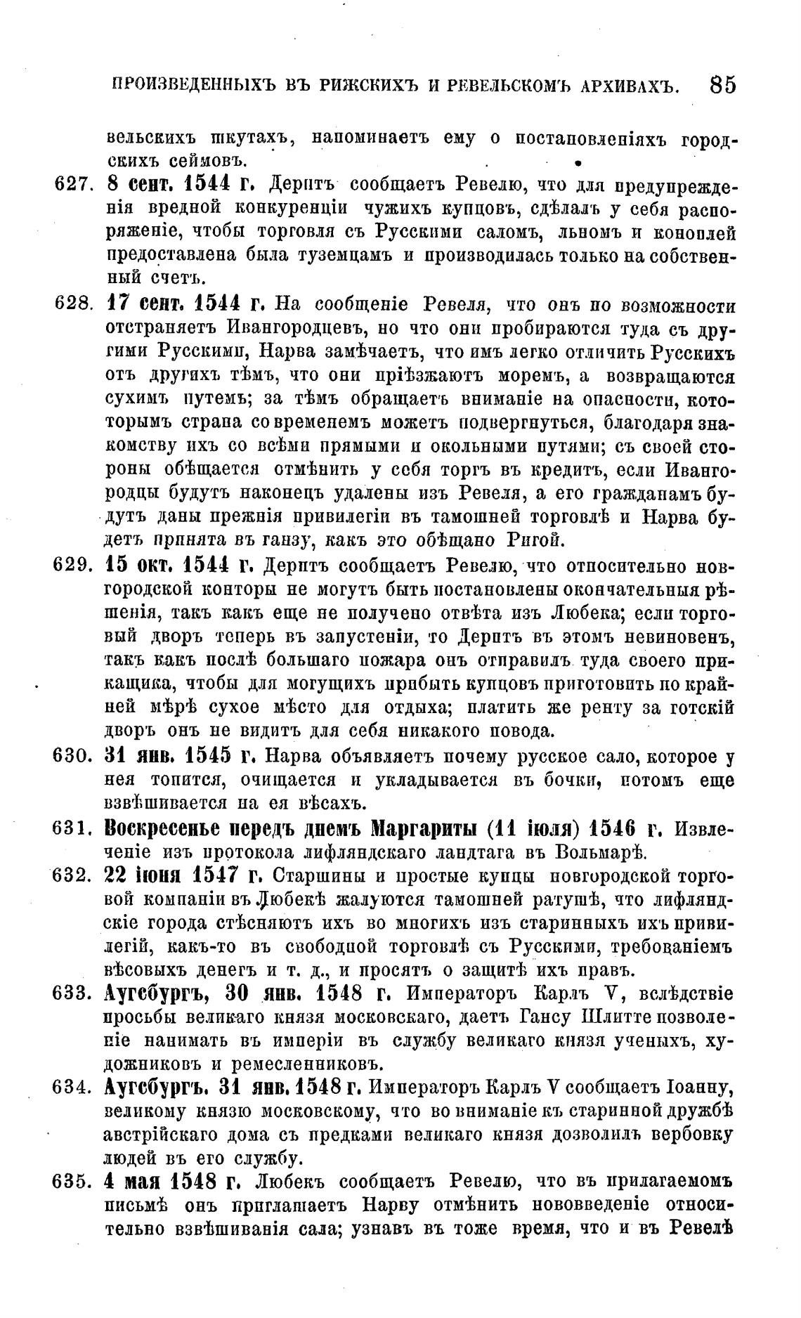 ПРОИЗВЕДЕННЫХЪ ВЪ РИЖСКИХЪ И РЕВЕЛЬСКОМЪ АРХИВАХЪ. 85