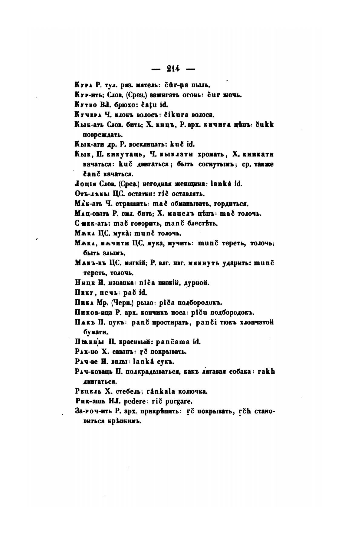 Кык-ать Слов. бить; Х. ввцъ, Р. арх. кичига цвиъ: ЕиКК