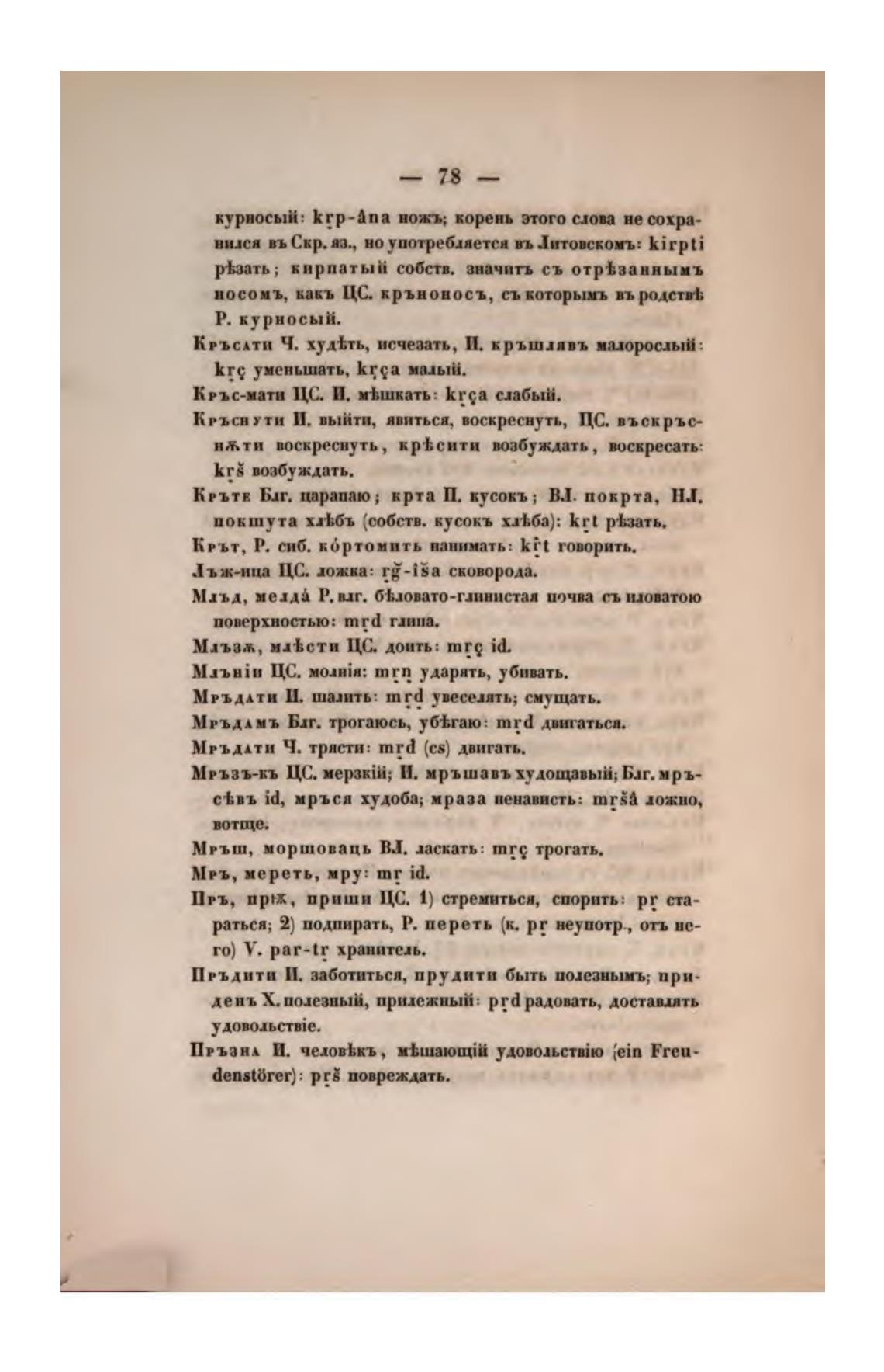 Крыв Б.п•. царапаю; крта П. кусокъ; ВЛ. покрта, НХ
