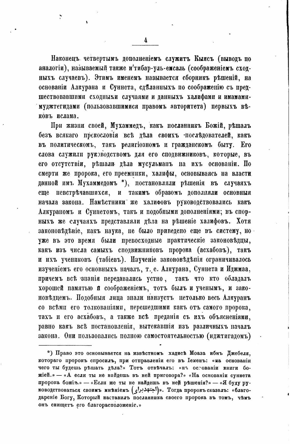 0) Право это основывается на изв'Встноиъ хадисј Моаза ибнъ Джебедя,