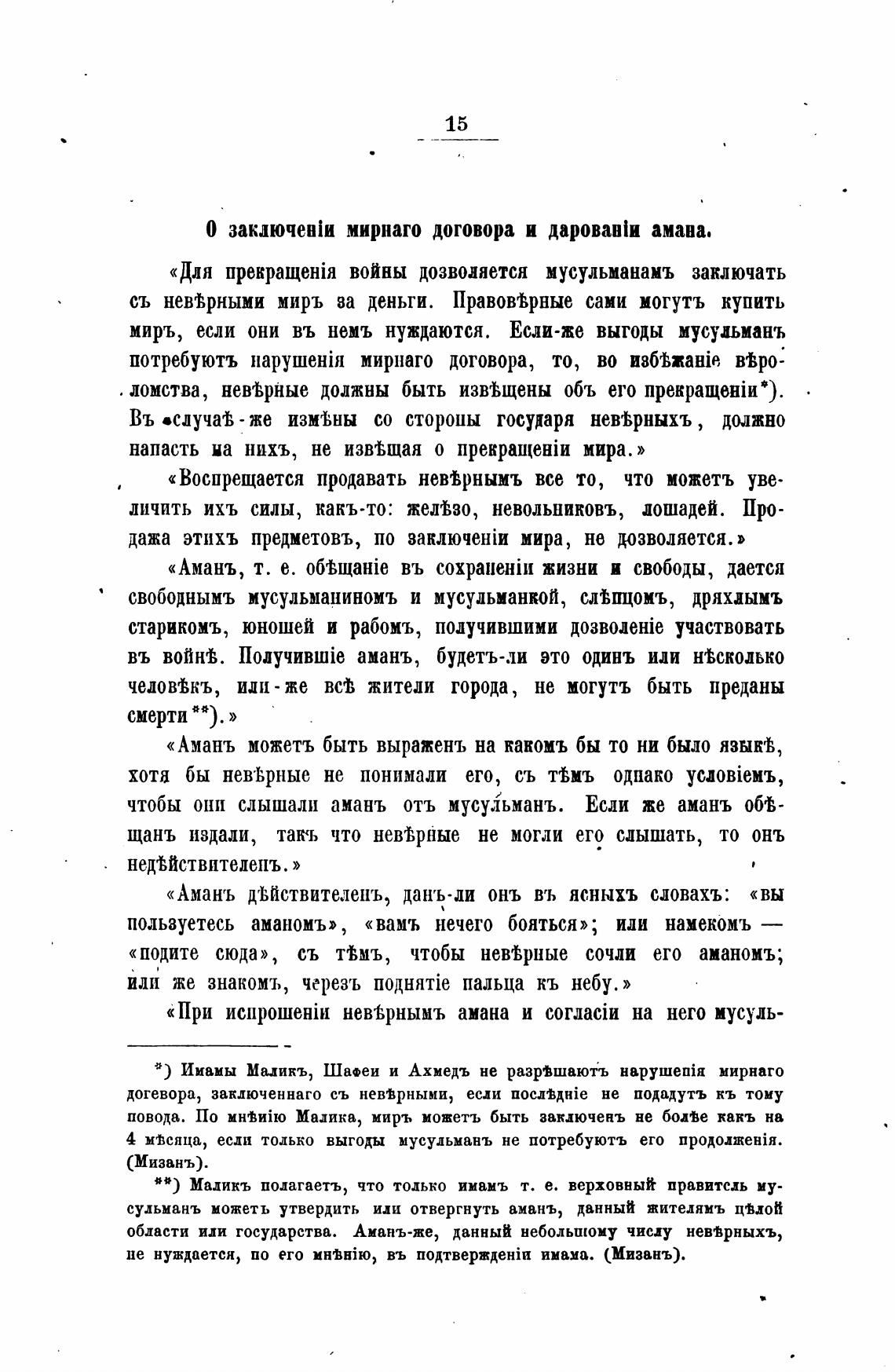 повода. По Малика, миръ можетъ быть заключень не боле Кань на