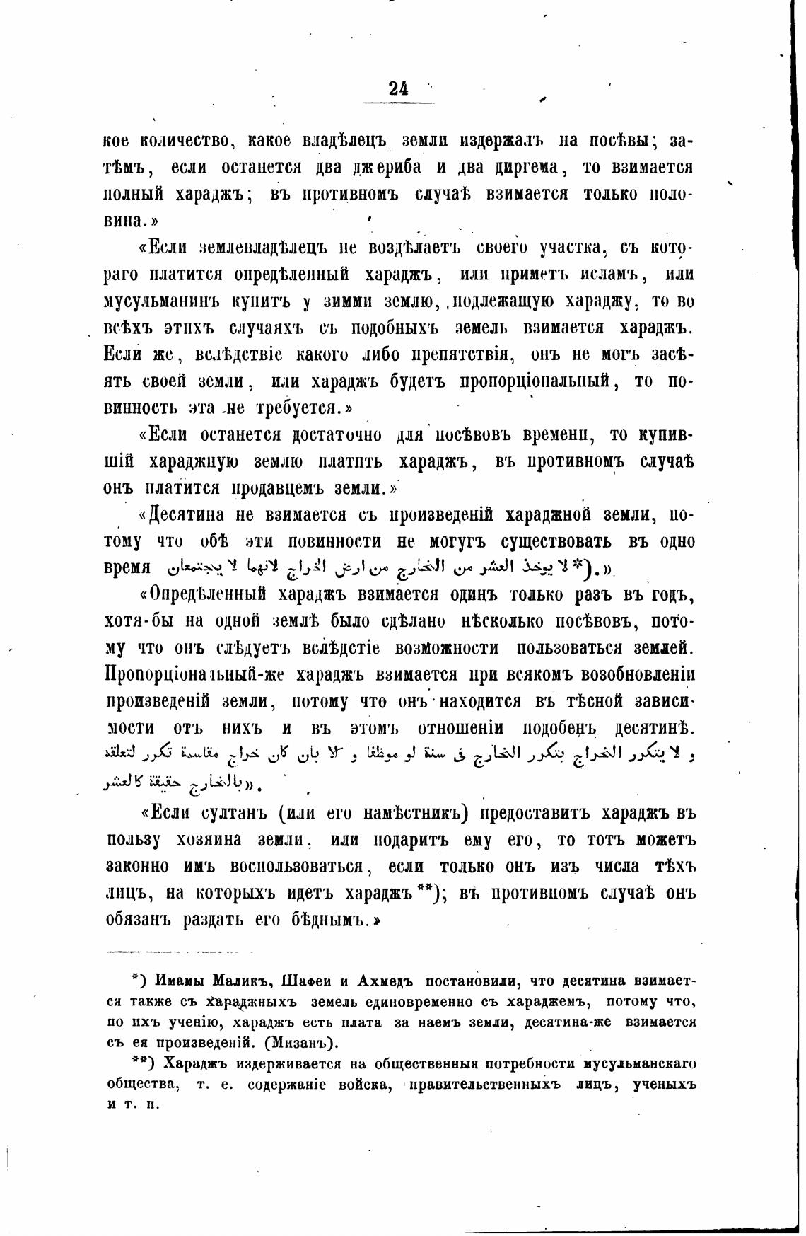 вс.мъ этихъ случанхъ съ подобныхъ земель взимается хараджъ.