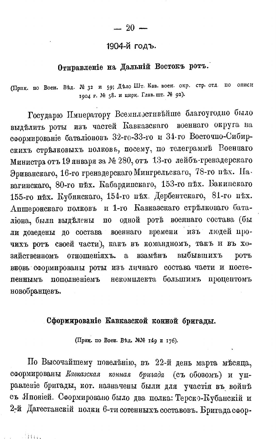 сформированы Кавказская конная бригада (съ обозомъ) и уп-