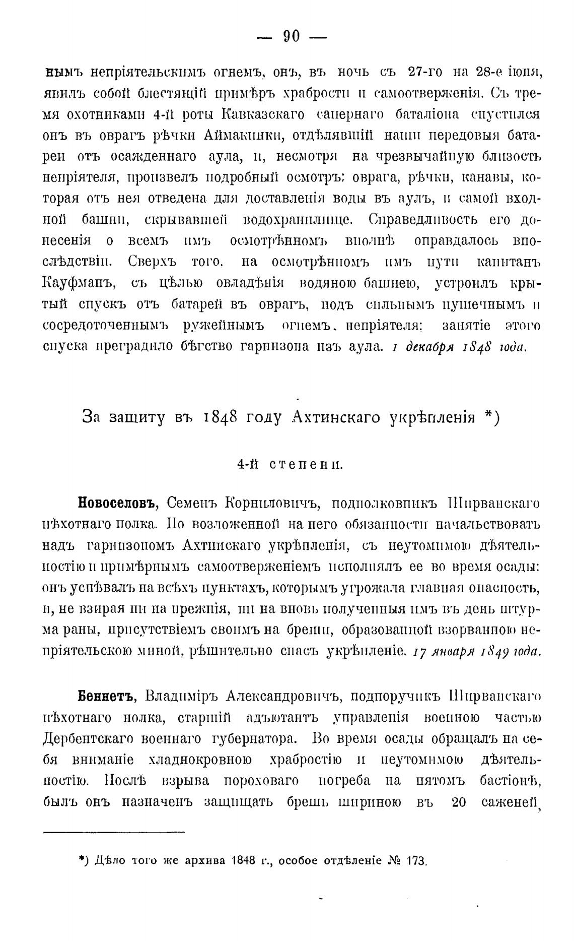 За зашиту въ 1848 году Ахтинскаго * )