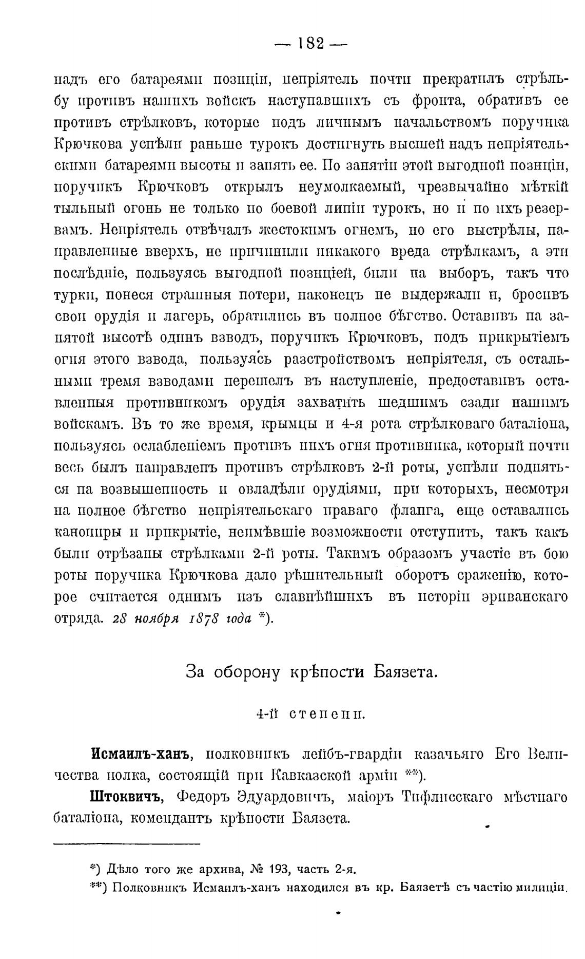 За оборону КР“ЬПОСТИ Баязета.