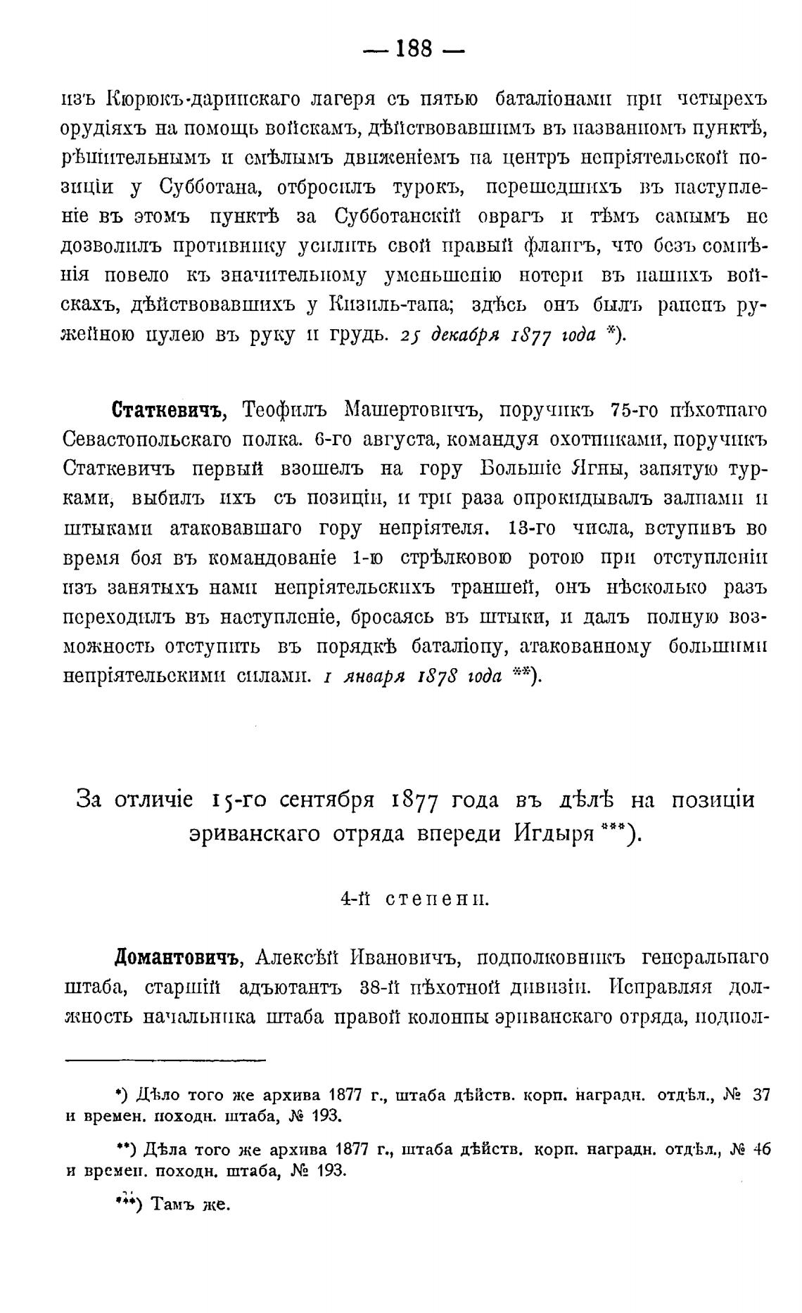 * * ) Д±ла того же архива 1877 г., штаба д±йств. корп. наградн. отд•Ьл., 46