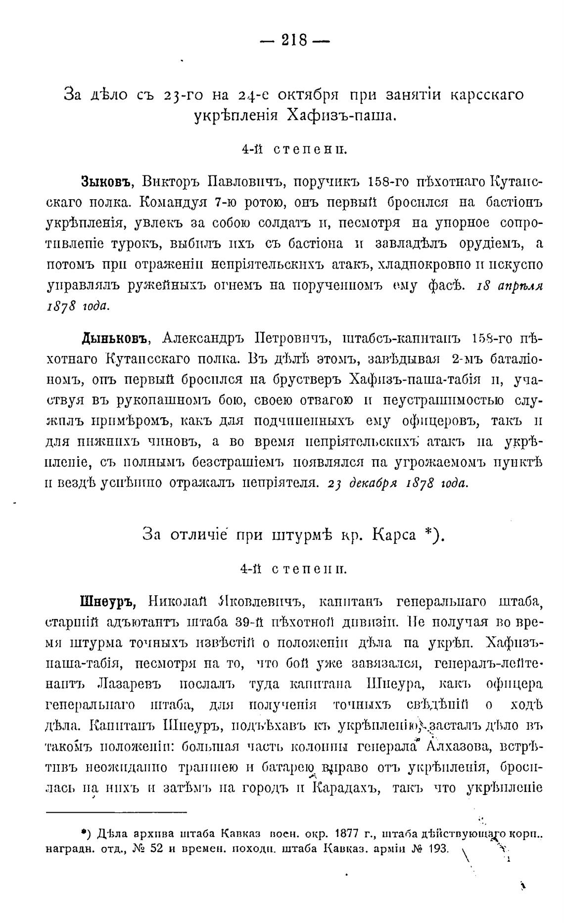 наградн. отд., Х2 52 и времен. походИ. штаба Кавказ. aPMiH 193.