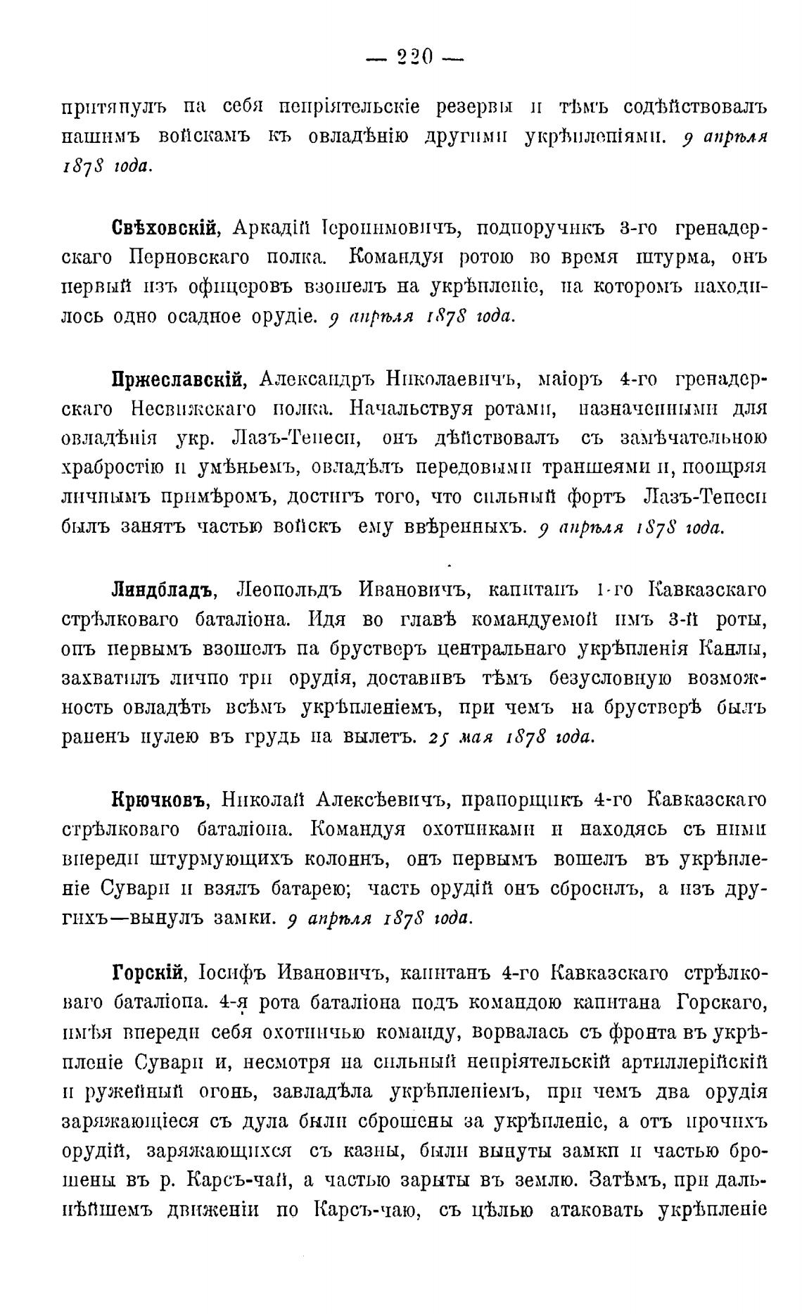 впереди штурмующихъ колоннъ, онъ первымъ вошелъ въ укр%пле-