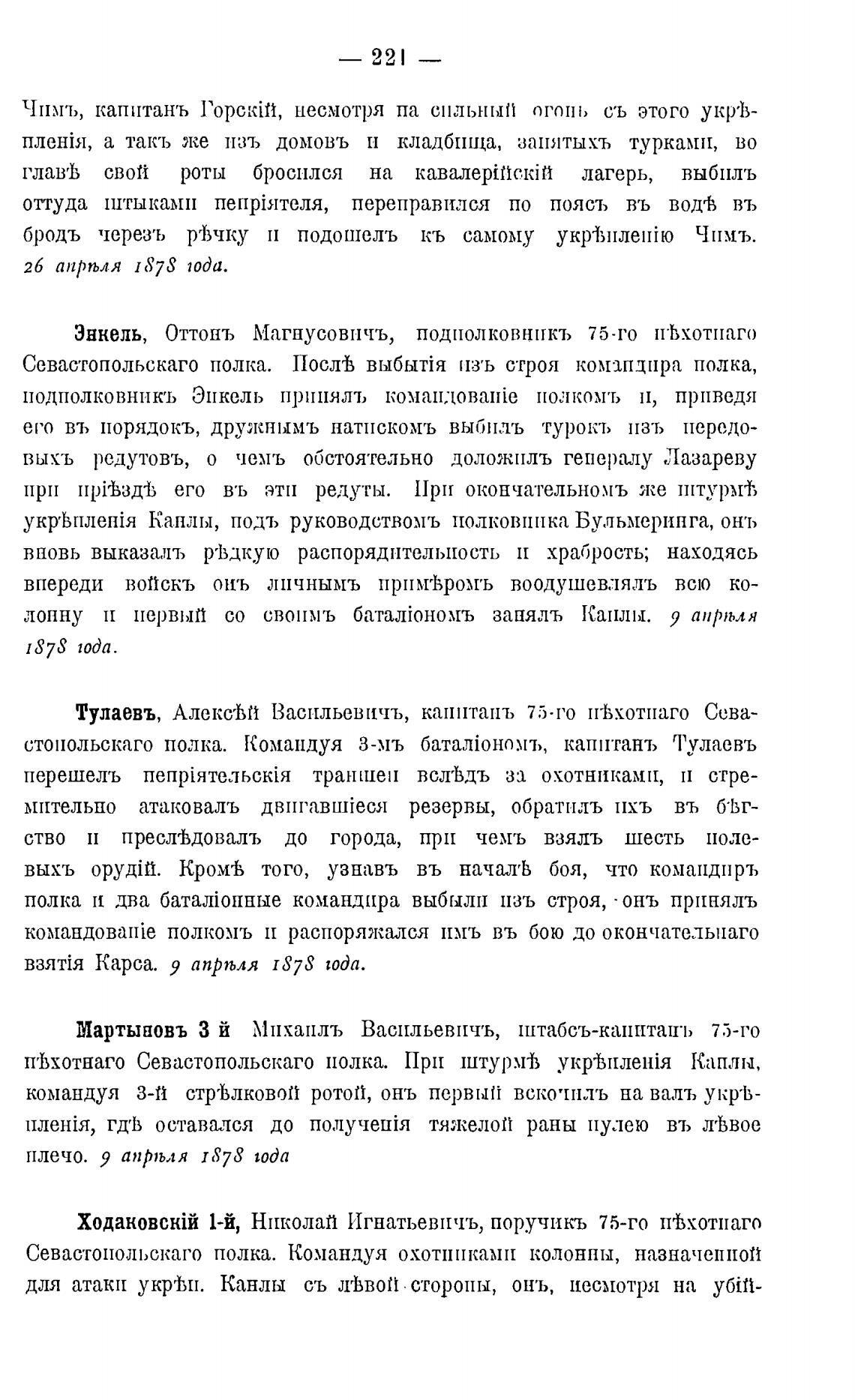 Энкель, Оттонъ Магнусовпчъ, подполковшткъ 75-го п•Ь.хотпаго
