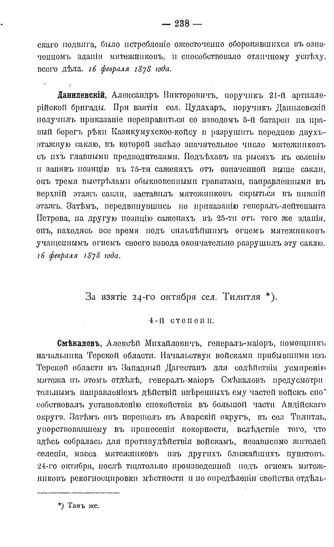 pi13ck0ft бригады. При взятји св.л. Цудахаръ, поручикъ ДанилевскЈ[У