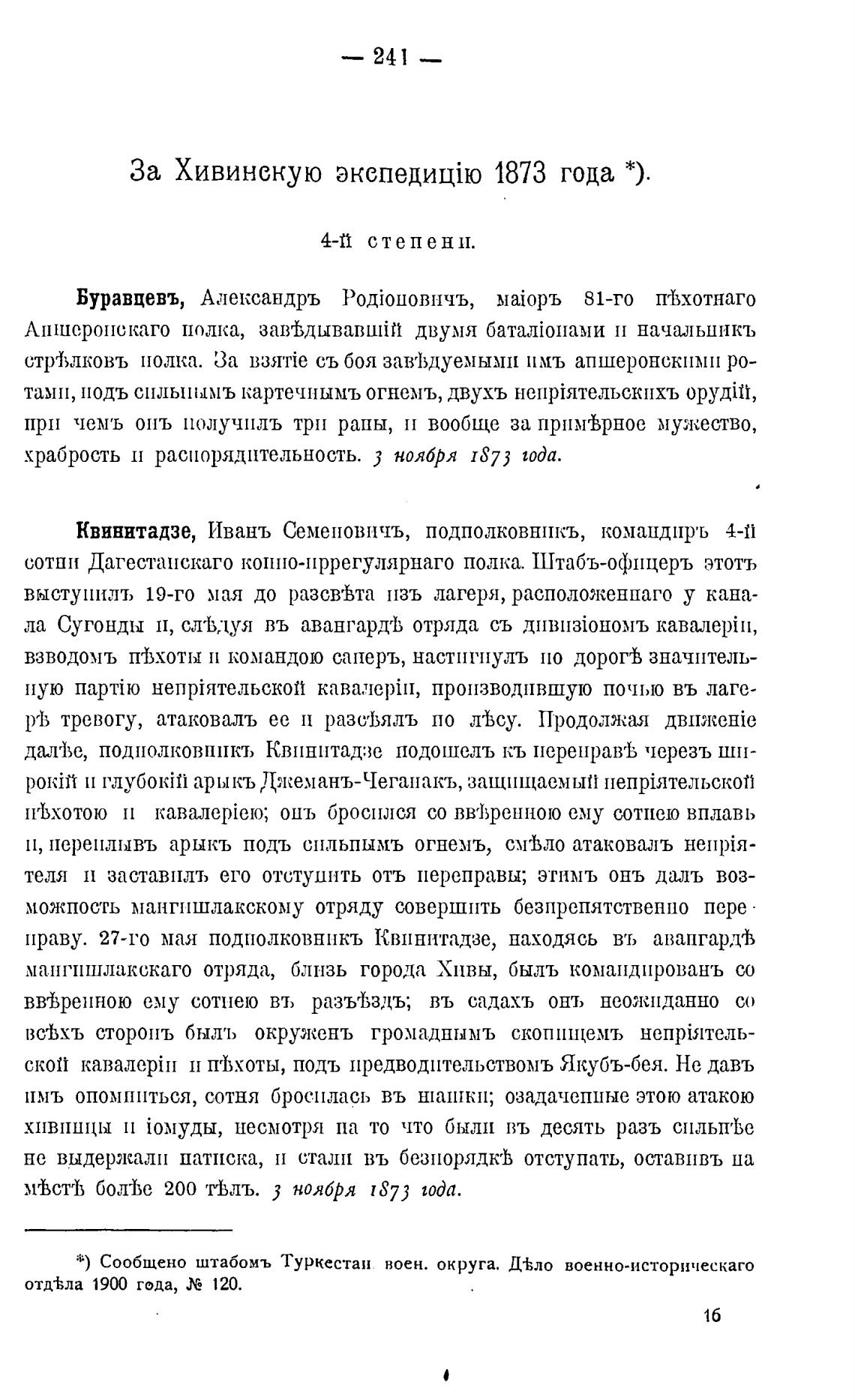 За Хивинскую 1873 года *).