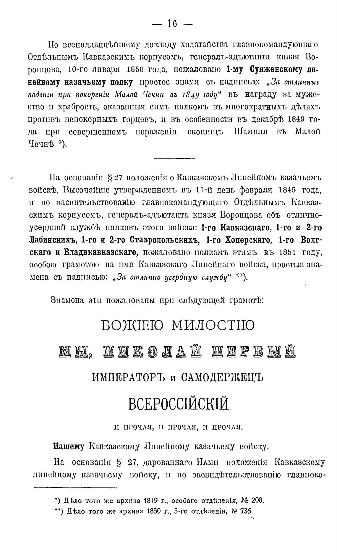 скаго и Владикавказскаго, пожаловано полкамъ этимъ въ 1851 году,