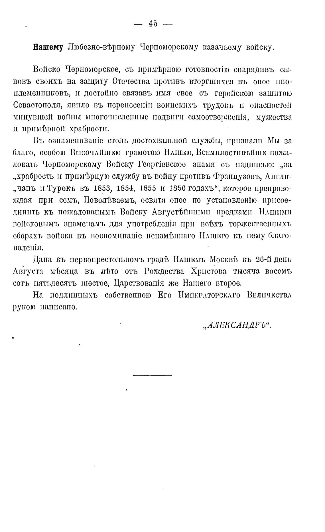 Нашему Любезно-втрному Черпоморскому казачьему войску.