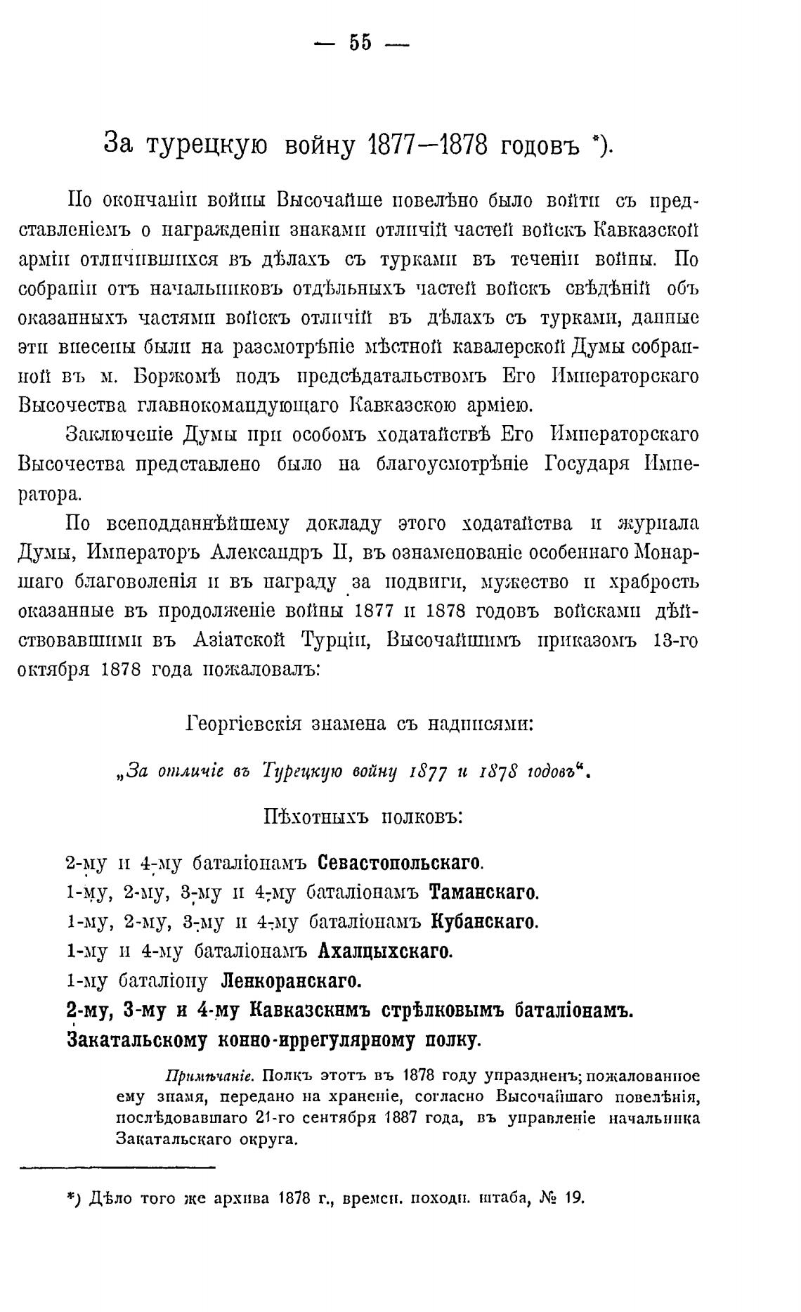 Прнмљчанје. Полкъ этоть въ 1878 году упраздненъ; пожалованное