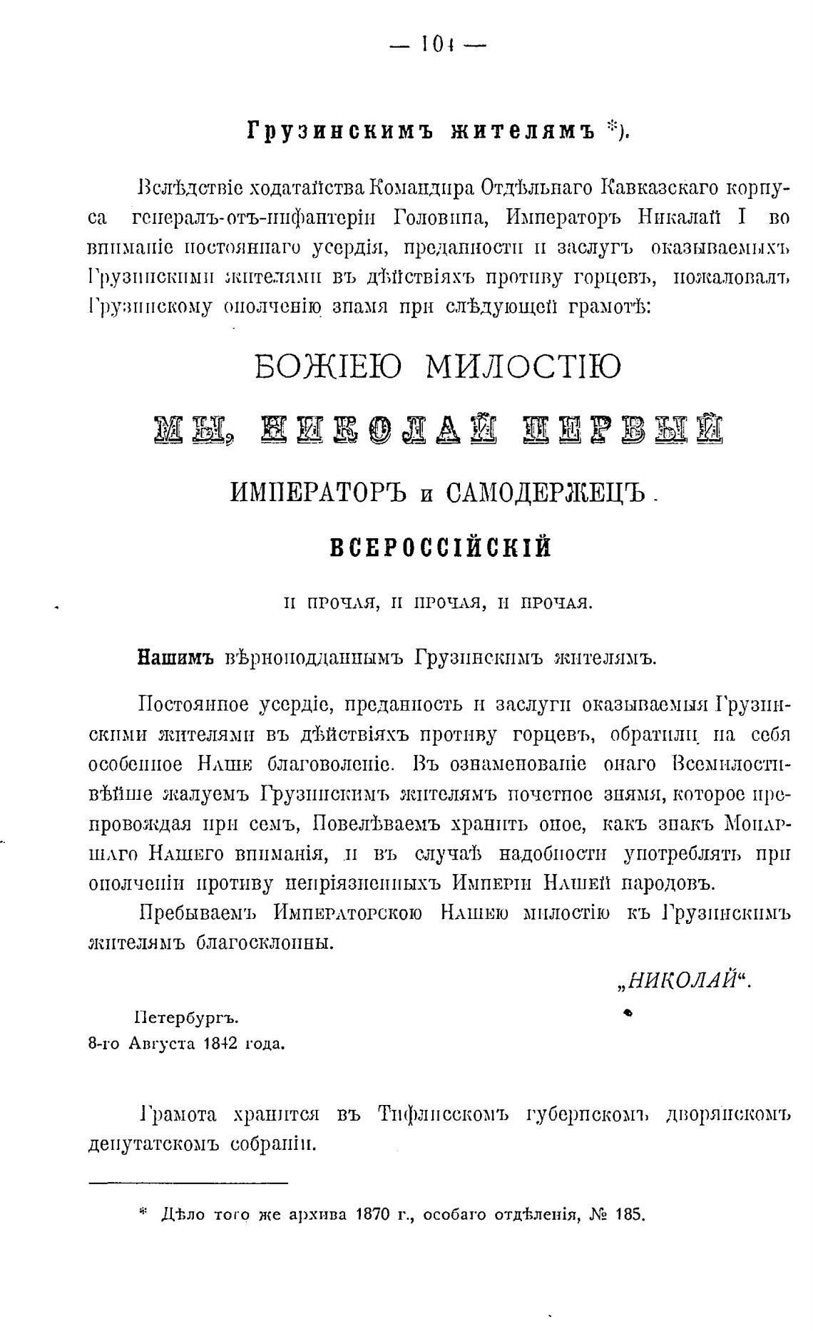 Нашимъ вгЬрноподданнымъ Грузинскпмъ жнтејтя.мъ.