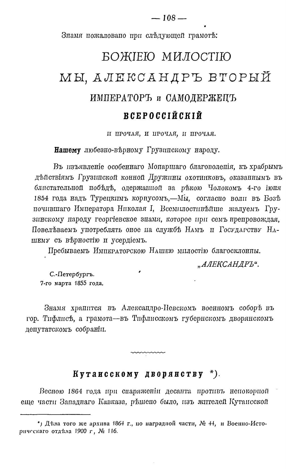 Кутаисскому дворянству *).