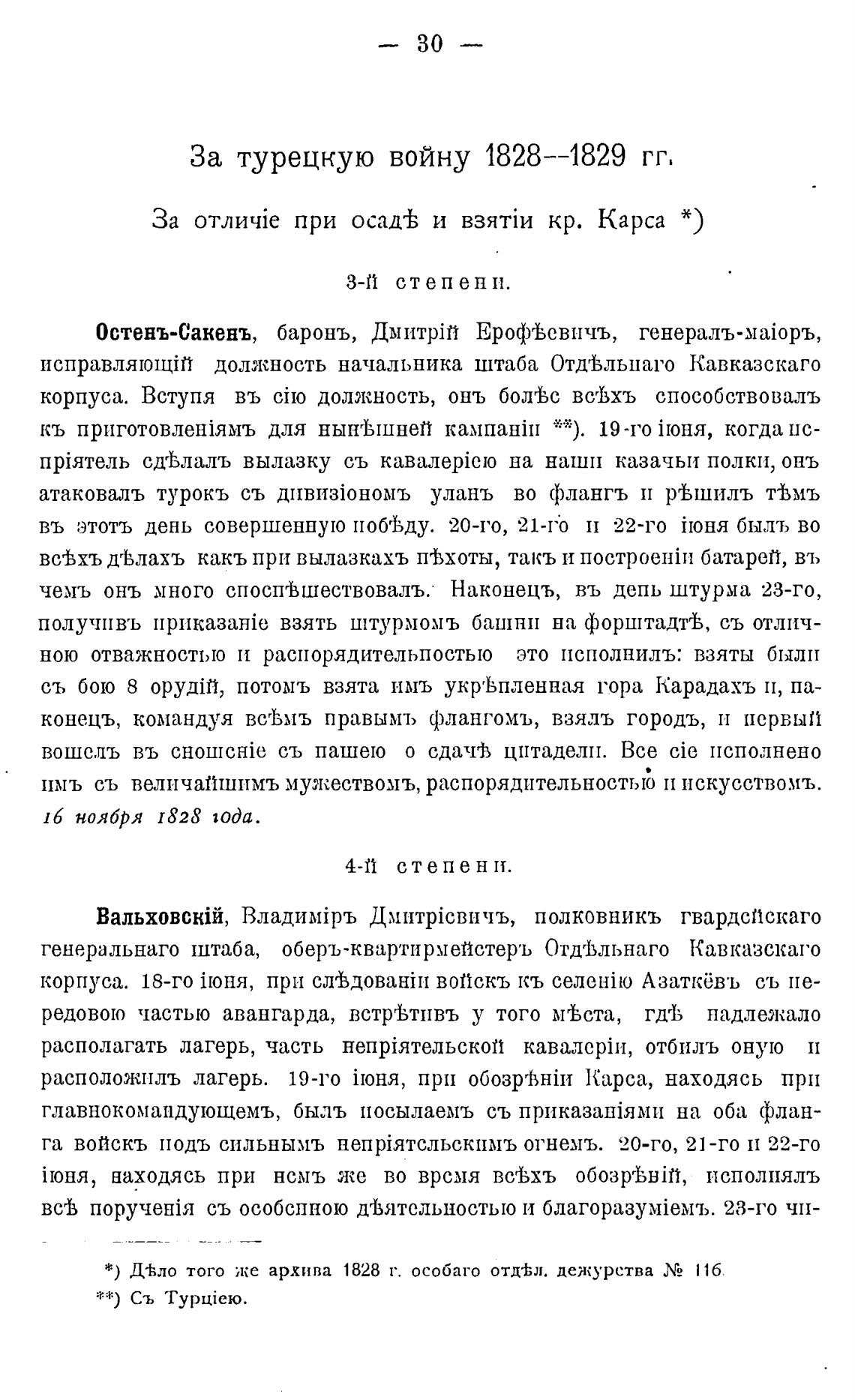 * ) Д•ћло того же архива 1828 г. особаго отд±л. дежурства N2 116