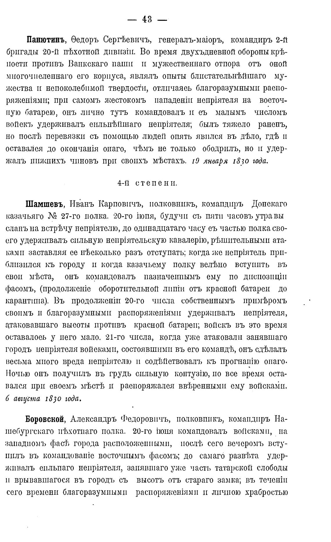Шамшевъ, Ивань Карповичъ, полковникъ, комапдиръ Допекаго