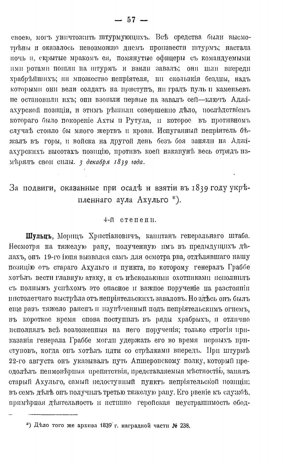 * ) того же архива 1839' г. наградной части 238.