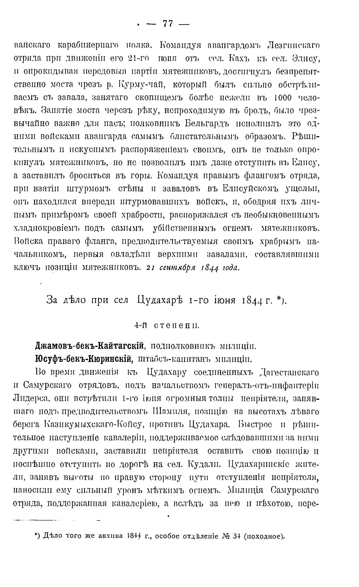 За д±ло при сел Цуда.хар± 1-го 1844 г. *).