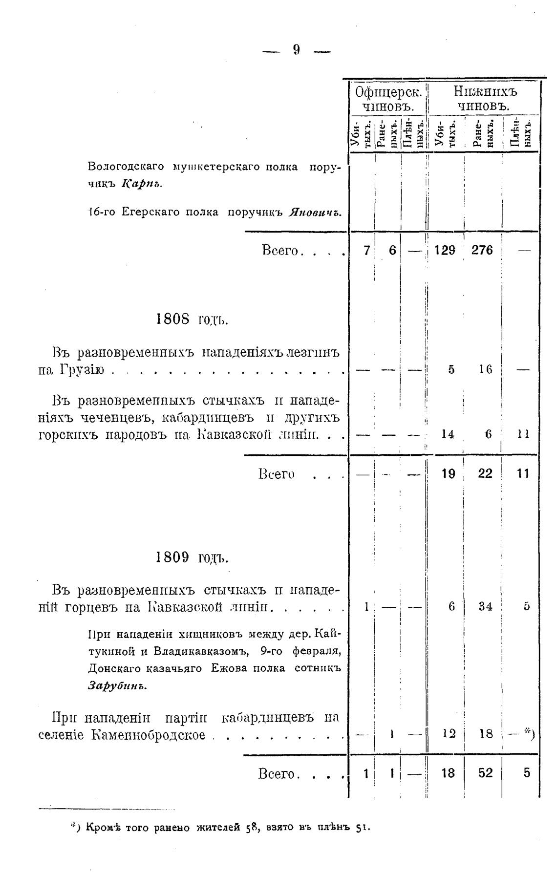 * ) Кром± того ранено жителей 58, взято въ пл•Ьнъ 51.