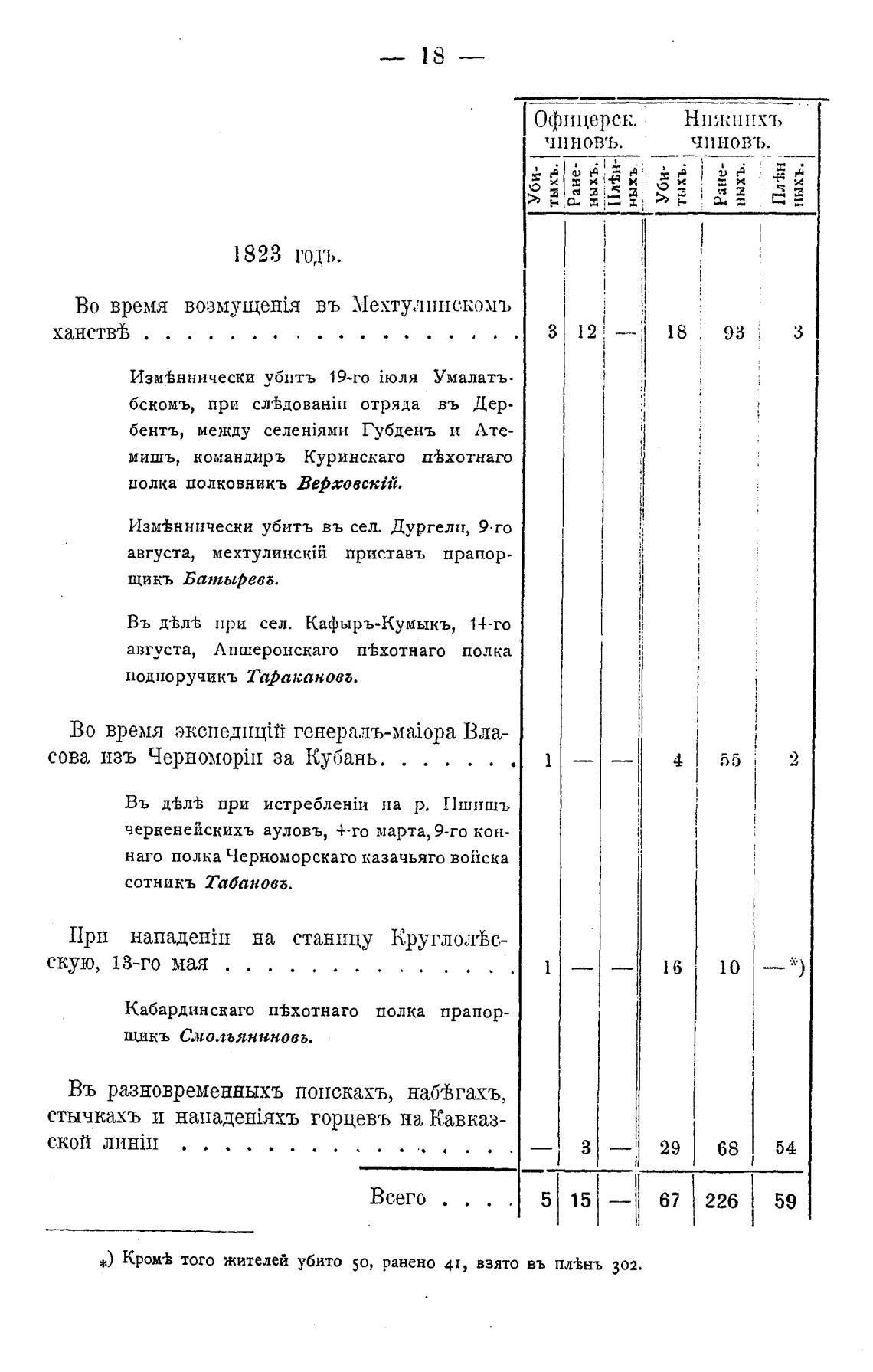 Кромв того жителей убито 50, ранено 4t, взято въ пл±нъ 302.