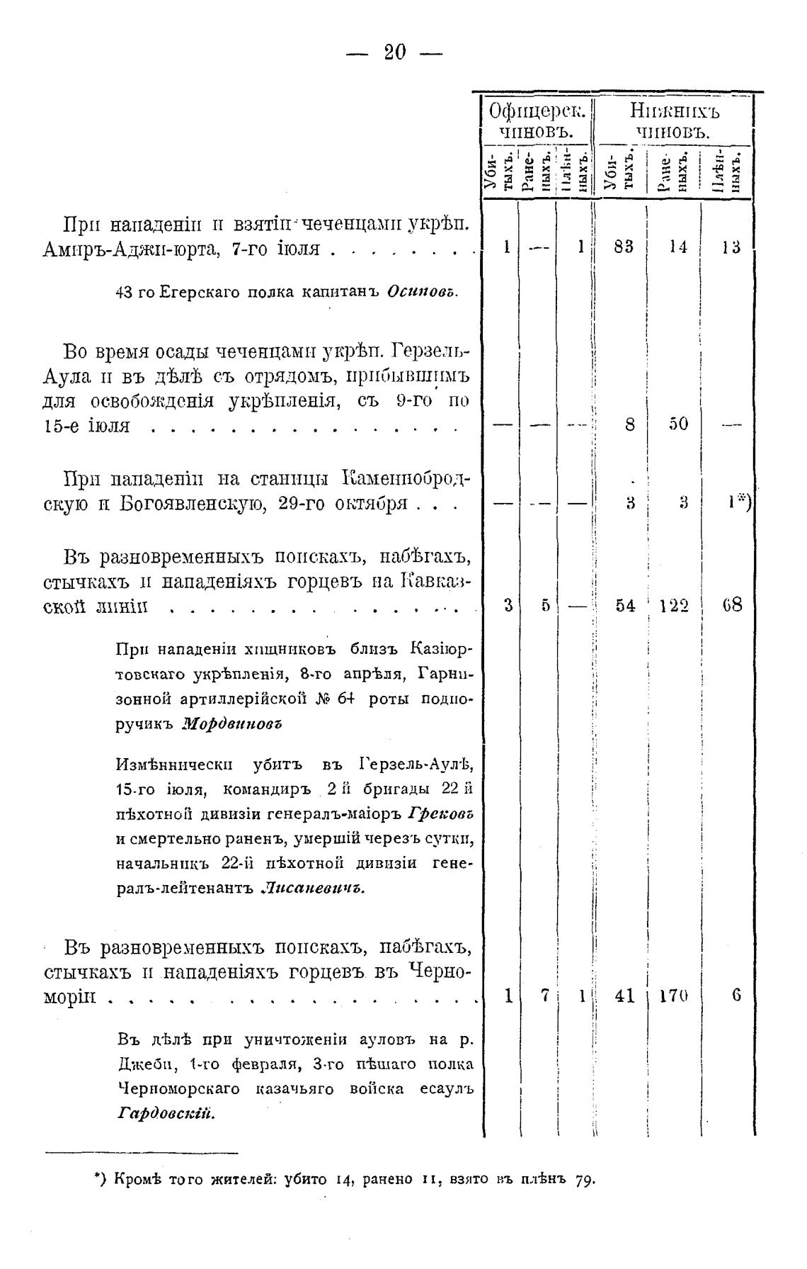 * ) Кром± того жителей: убито ц, ранено