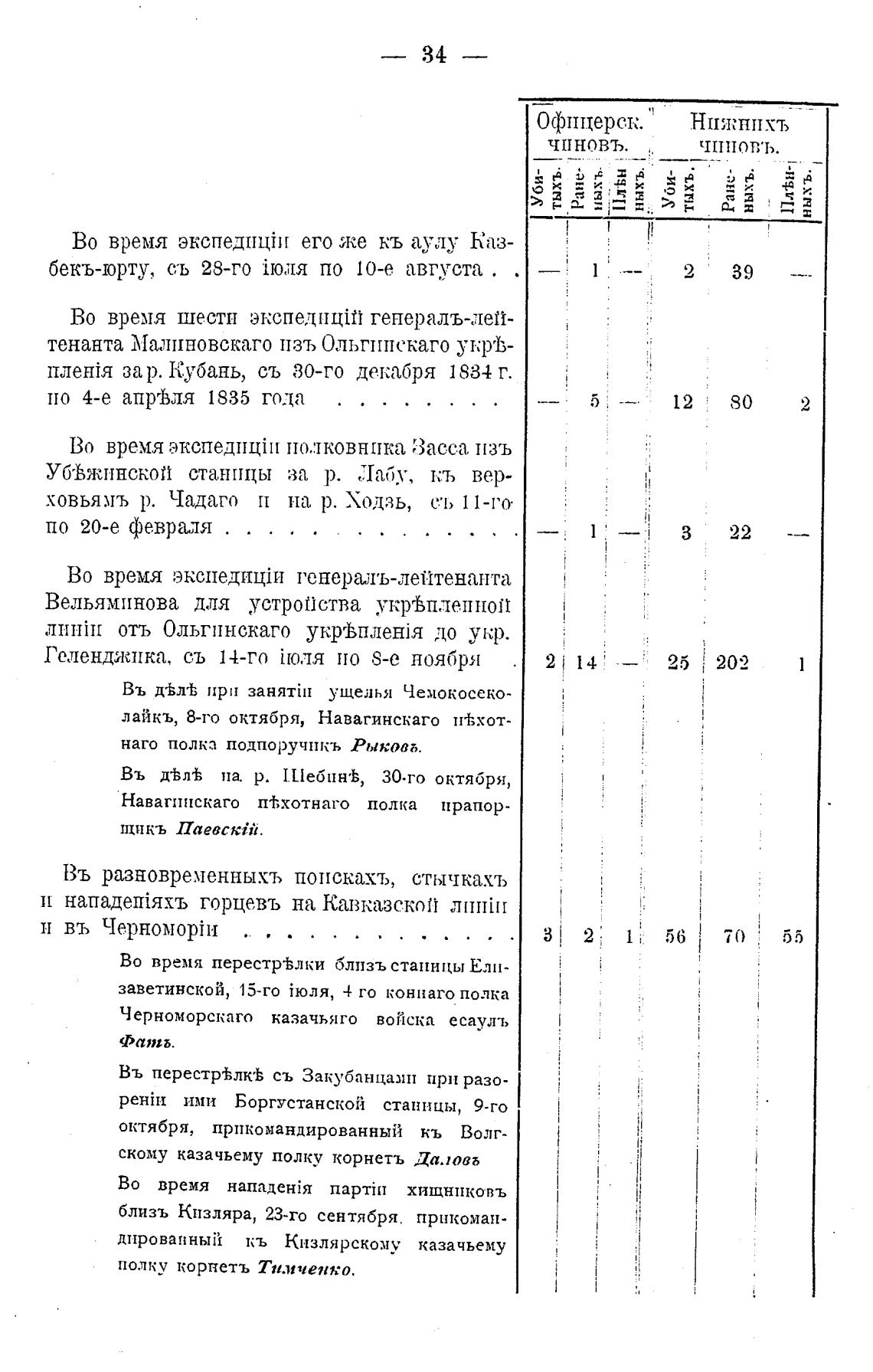 плекйя за р. Кубань, съ 30-го декабря 1834 г.