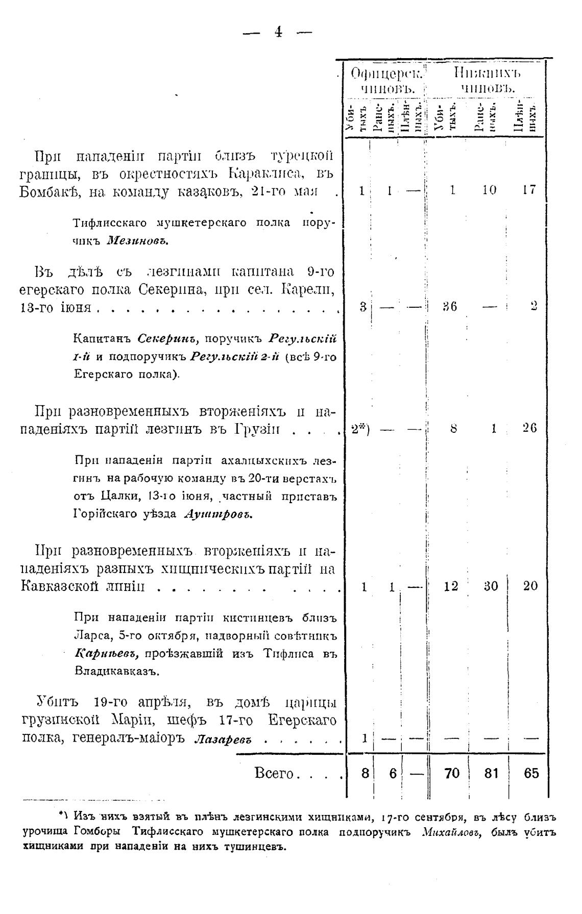 урочища Гомборы Тифлисскаго мушкетерскаго полка подиоручикъ Михайлова, быль убить