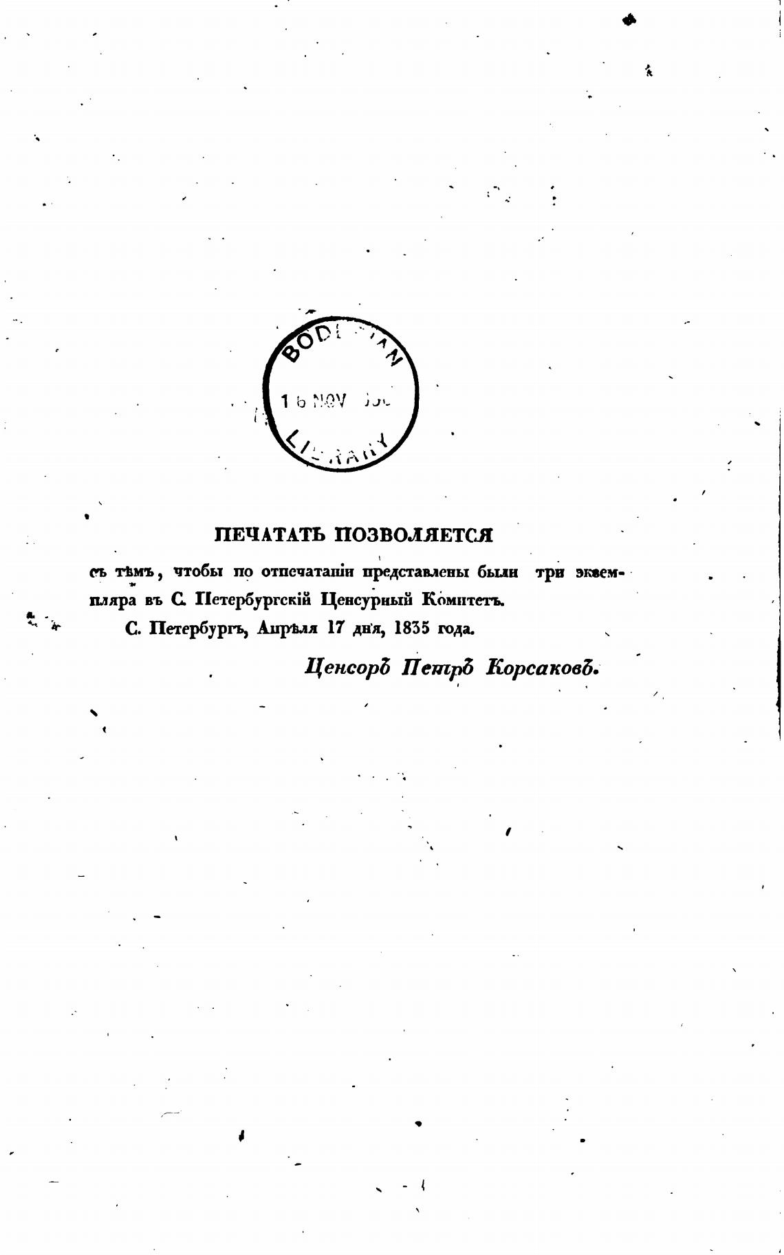 С. Петербургь, Аирь.ал 17 Шя, 1835 года.