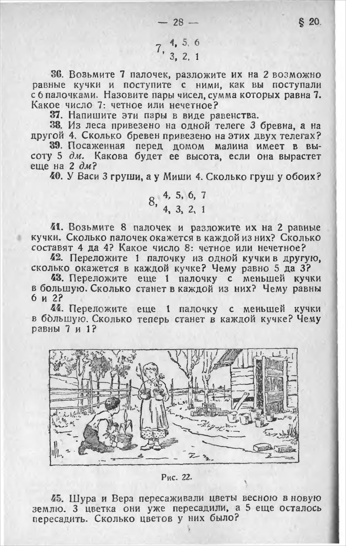 с 6 палочками. Назовите пары чисел, сумма которых равна 7.