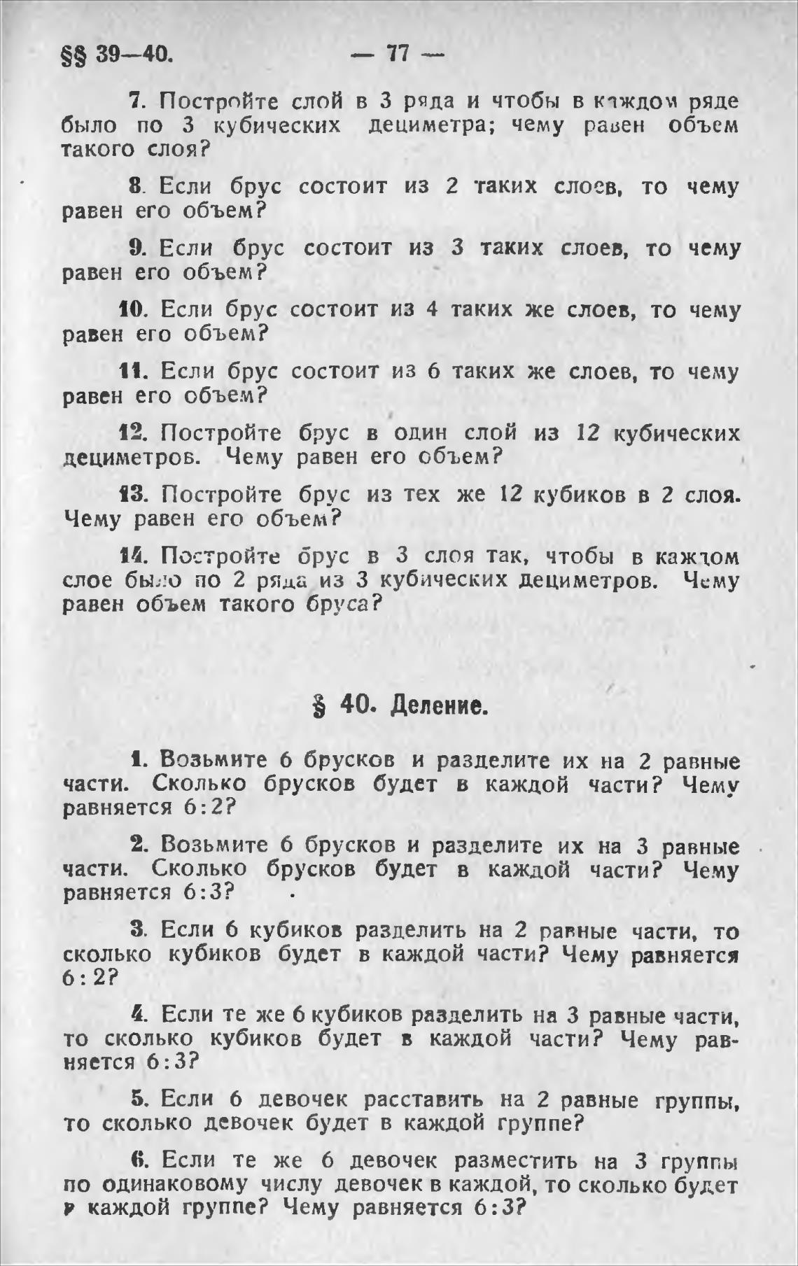 части. Сколько брусков будет в каждой части? Чему